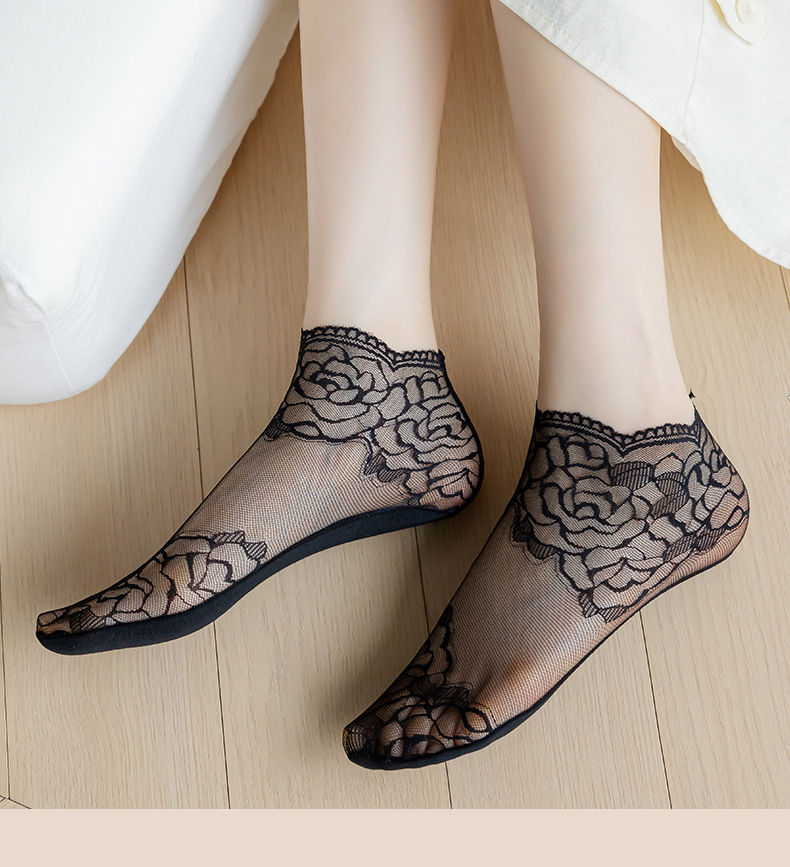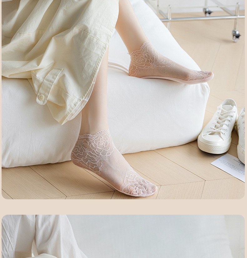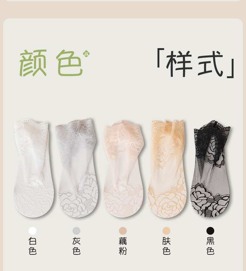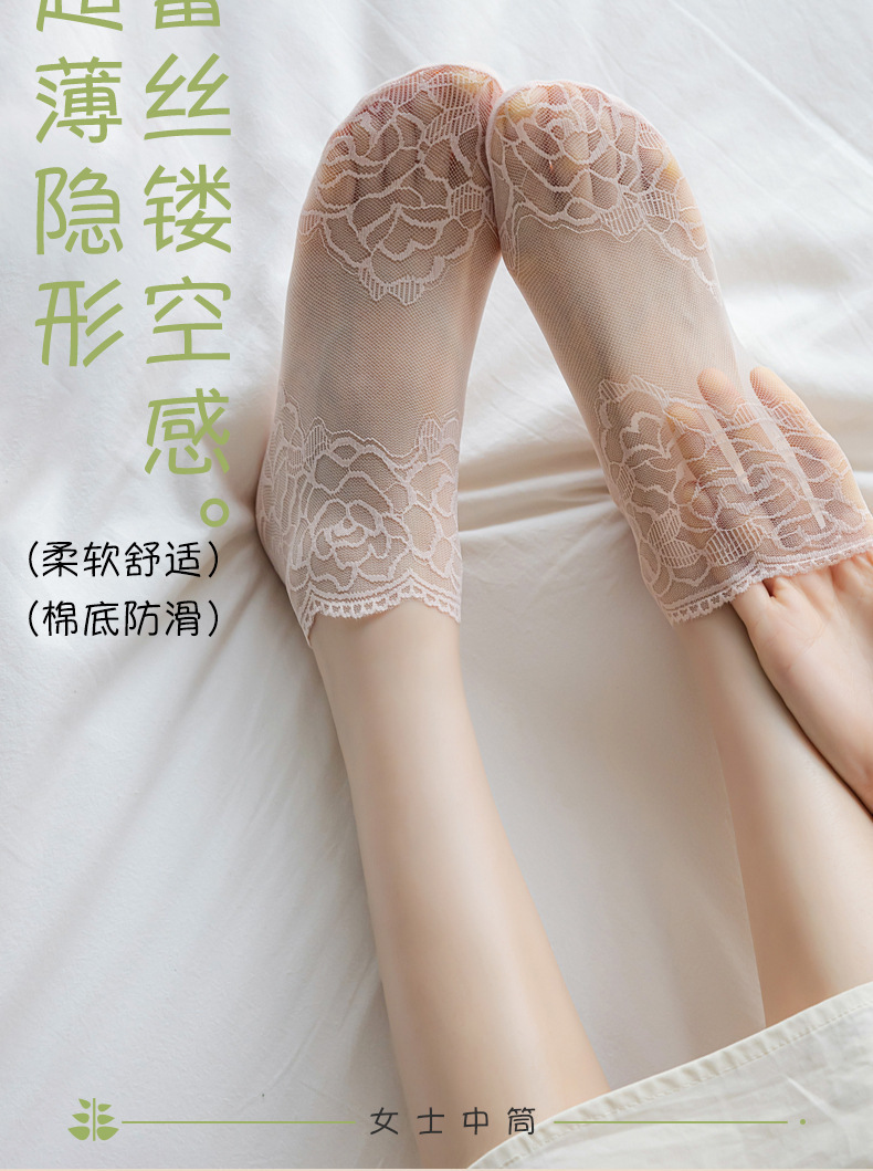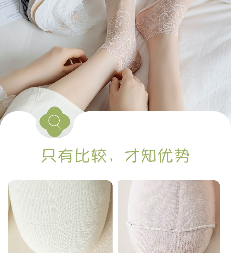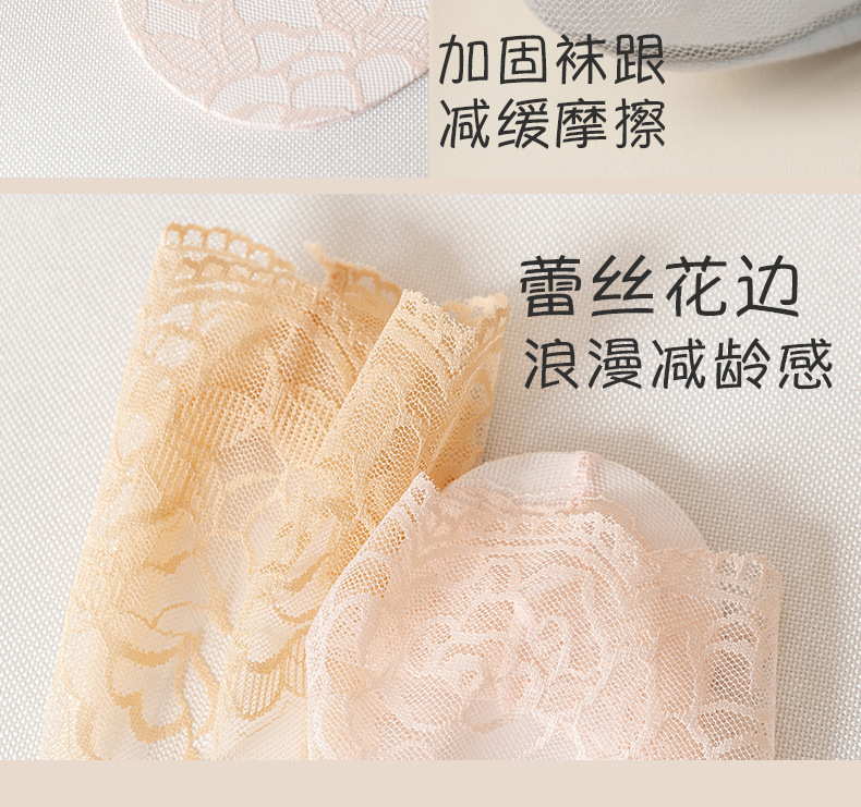 【9.9秒3双❗️薄款蕾丝隐形短袜】细腻如丝,柔软亲肤,防勾耐磨,短丝袜女款夏季丝袜防勾丝水晶袜棉底钢丝袜肉色袜子女士短袜L