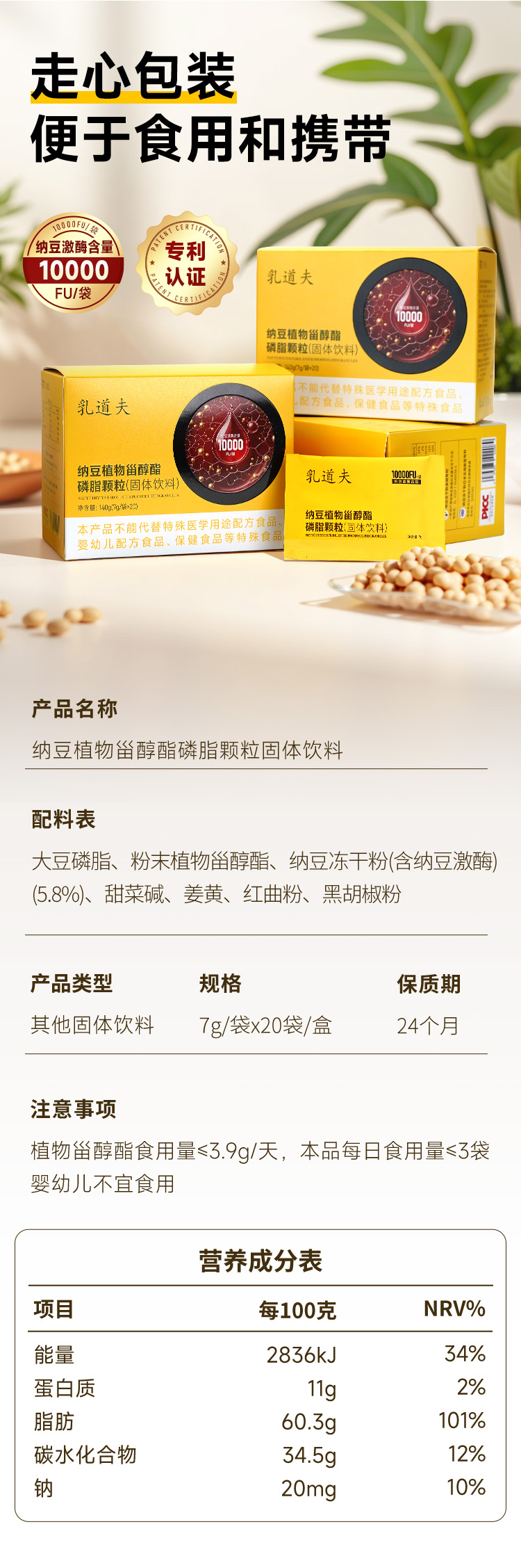 全食物日记 纳豆植物甾醇酯磷脂颗粒140g(7g/袋*20)