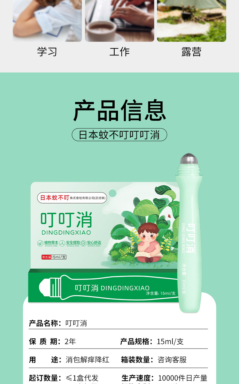 【草本植萃!日本蚊不叮叮叮滚珠】薄荷防蚊舒缓棒防蚊虫叮咬清凉叮消