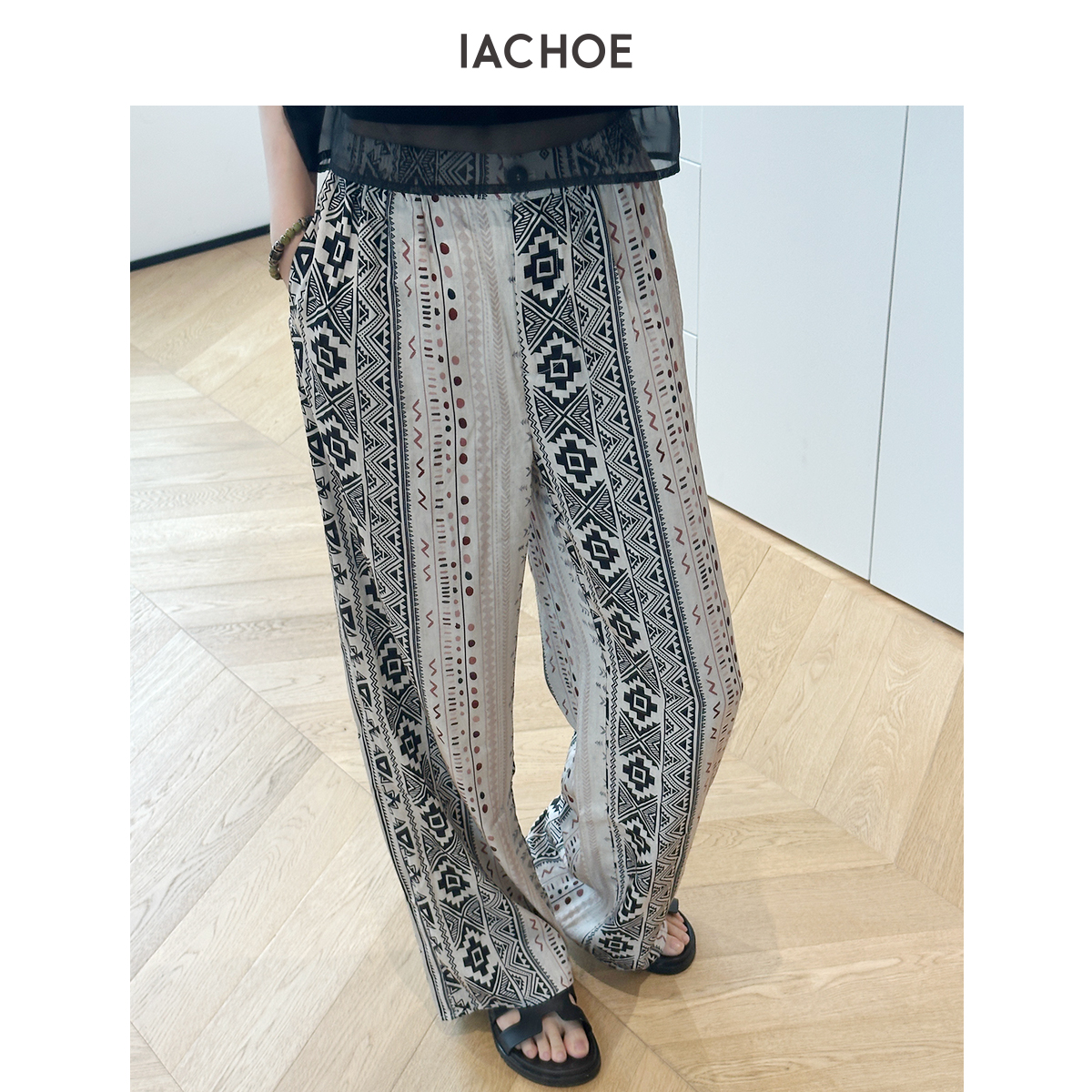 棉仓352619007-高腰阔腿全棉牛仔裤女立体褶裥剪裁 春秋复古单宁水洗拖地裤