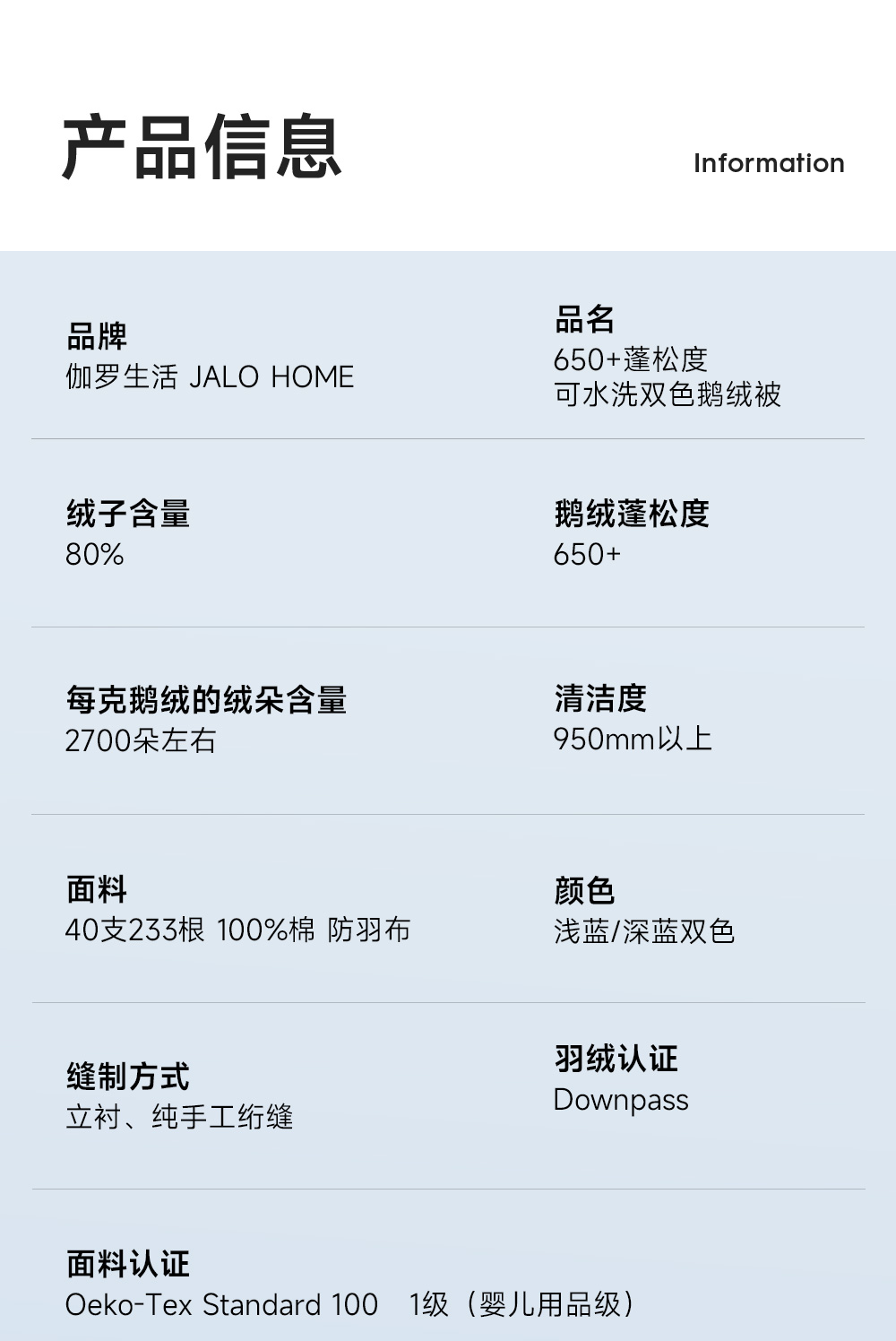 伽罗 JALO 40支 650+蓬松度可水洗鹅绒被