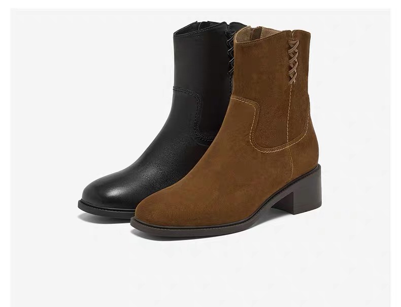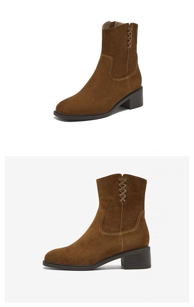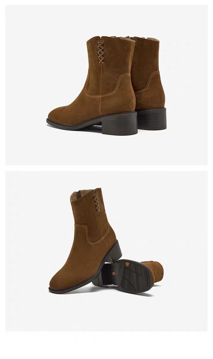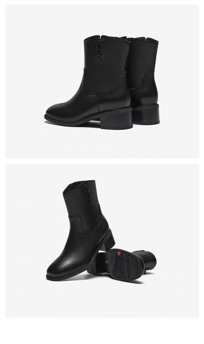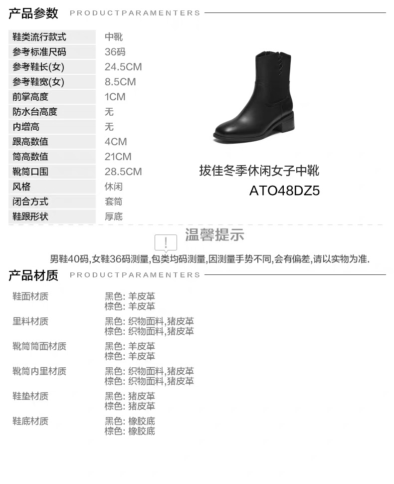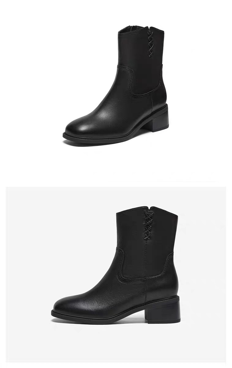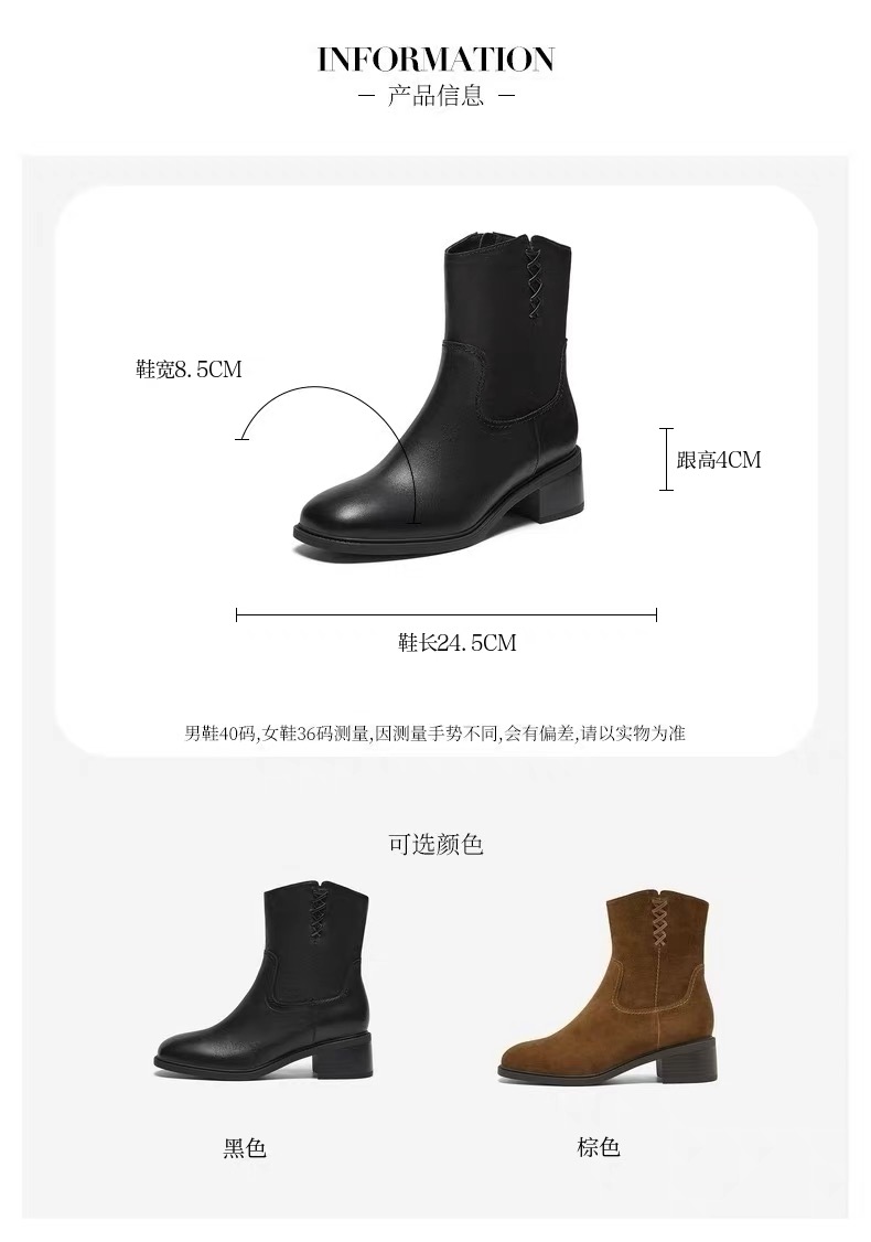 【云粉节】 【拔佳】BF楼Bata西部靴女2025冬款羊皮百搭复古粗跟时装牛仔靴ATO48DZ5 吊牌价1459 活动价999