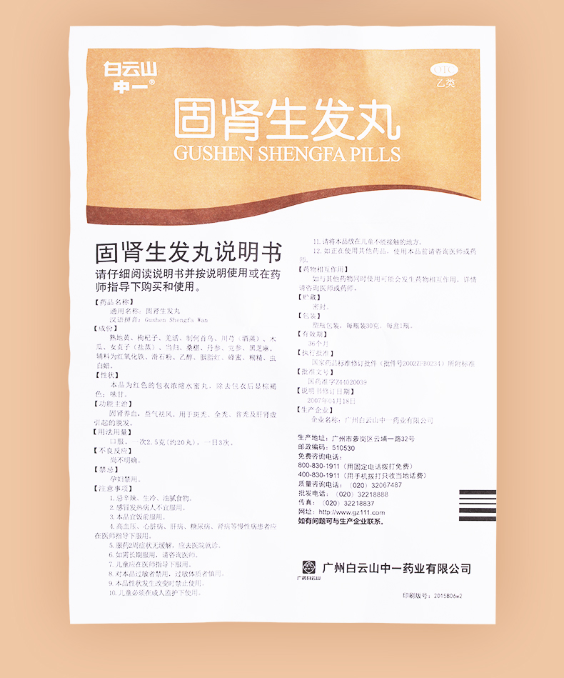 多盒优惠】白云山固肾生发丸30g 养血益气斑秃全秃普秃肝肾虚脱发