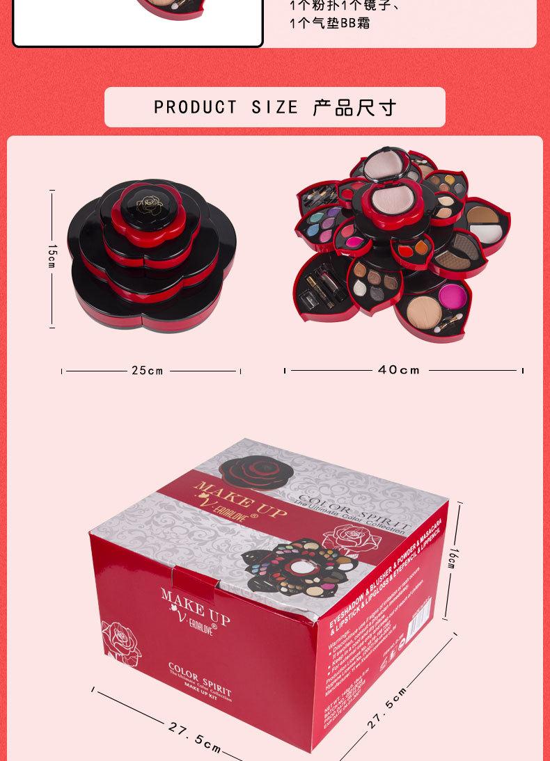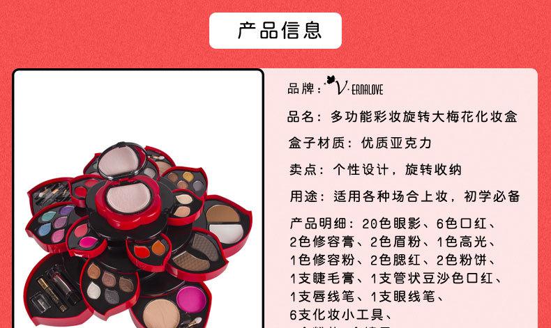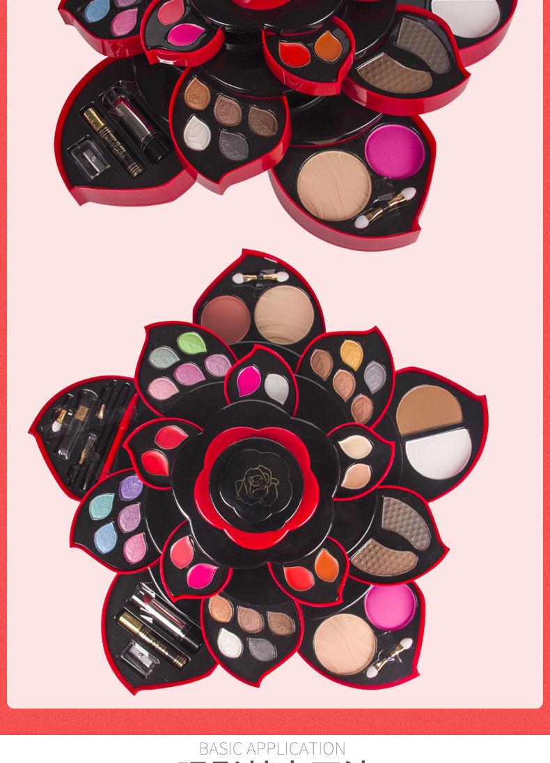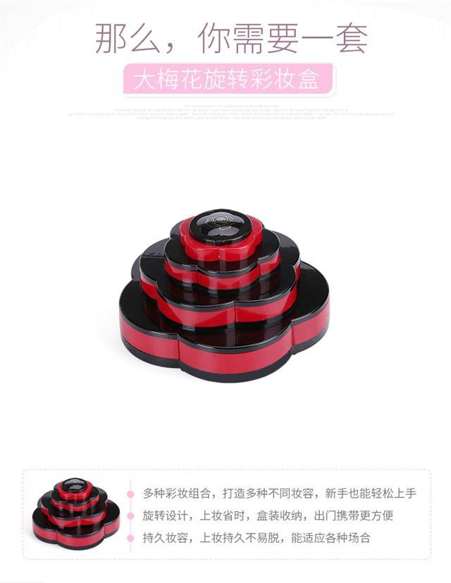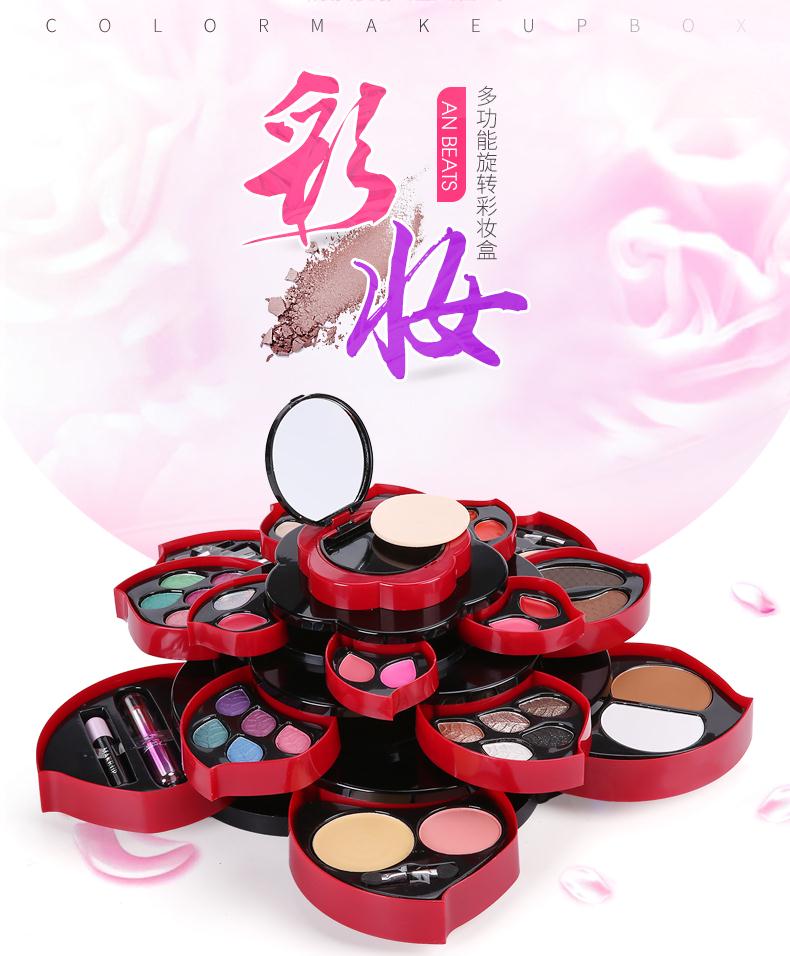 正品保证,旋转大梅花,个性化妆盒,女神必备,初学者必备,东西齐全。多功能彩妆眼影盘,一盘搞定整个妆容,大梅花 一转就开花,送闺蜜,送母亲,送老婆,送自己的惊喜礼物!