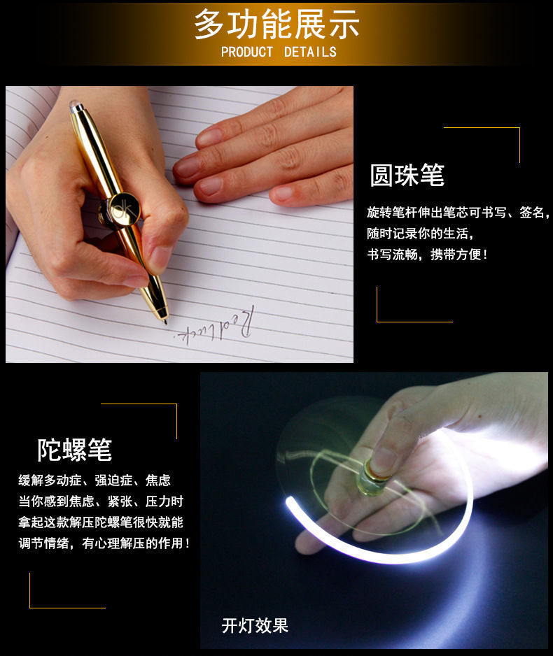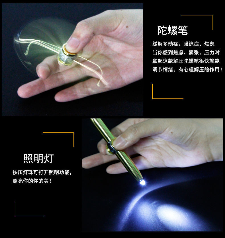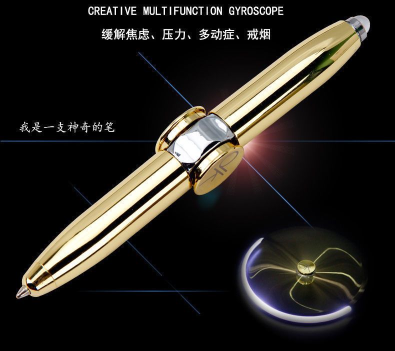 指尖陀螺LED灯发光玩具笔无聊发泄解压笔金属笔多功能学生圆珠笔