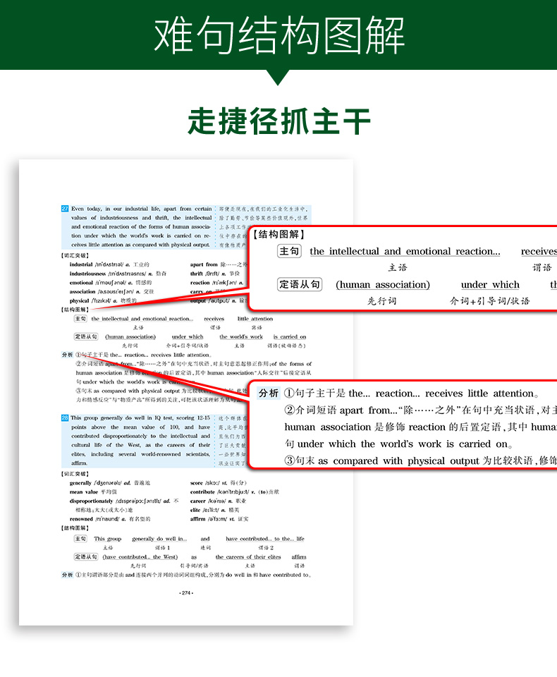 3. 考研英语真题长难句500多条结构图解,指导考生如何化繁为简,化难为易;