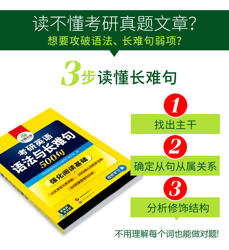 2. 系统归纳考研英语语法,为考生读懂考研英语长难句打下基础;