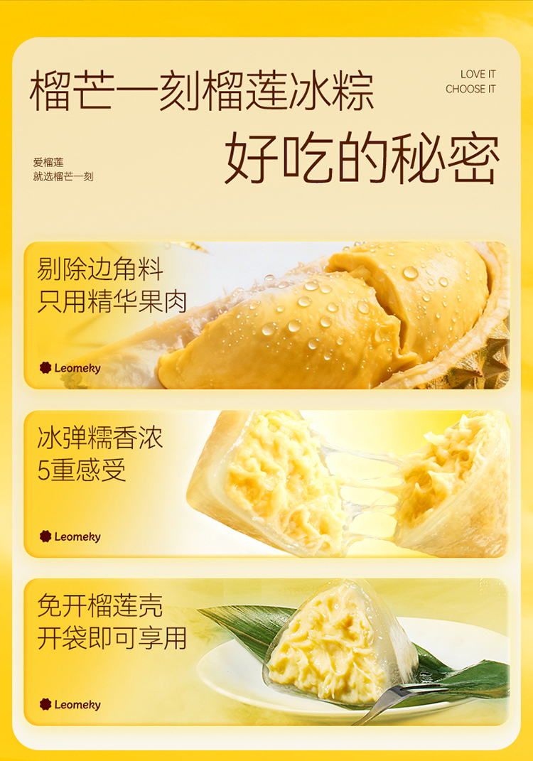 榴芒一刻榴莲冰粽糕点450克(45g*10)*1/2/3/4袋 纯榴莲果肉加量至46%冰弹糯香浓开袋即食