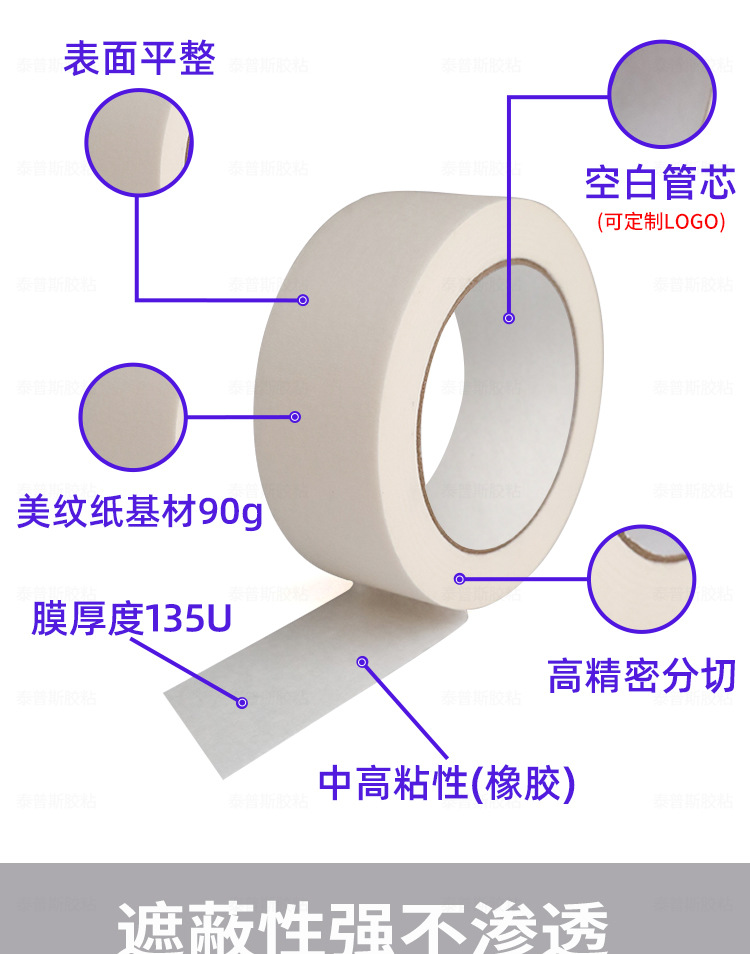 无痕美纹纸胶带白色20米 中高粘装修喷漆遮蔽撕下美术绘画易手撕美纹胶带纸