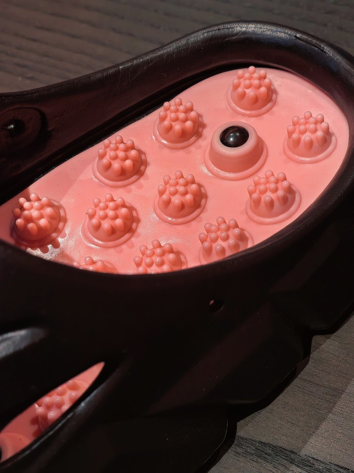 来上一双磁石按摩拖鞋,就是,像赤脚走在公园的鹅卵石路上,很酸爽!我是觉得还蛮舒服的,但我妈不行,说像受刑。。。所以,看个人喜好选哦,开始时可以穿袜子,踩一踩,按按脚底,佛系养生一下!