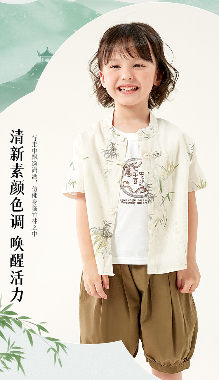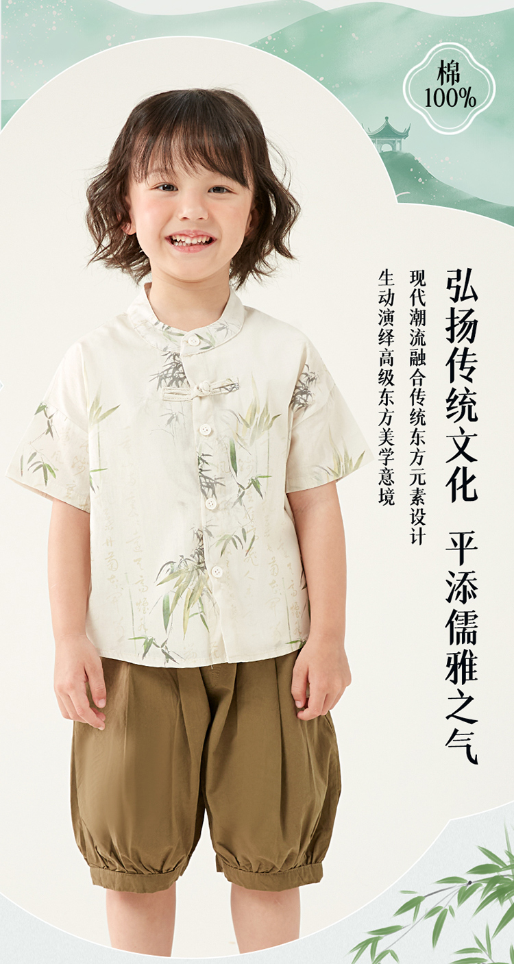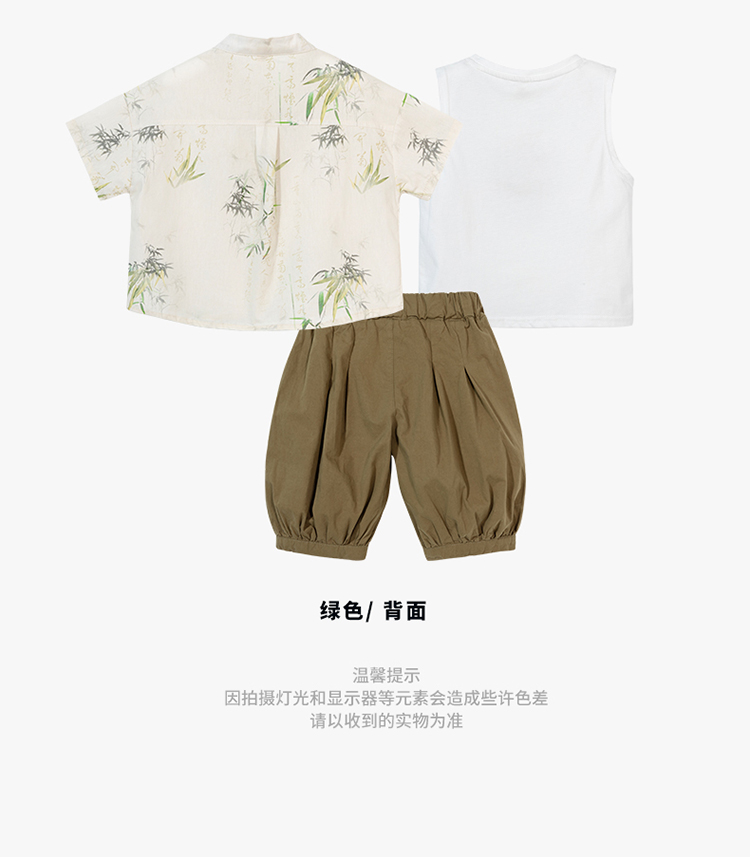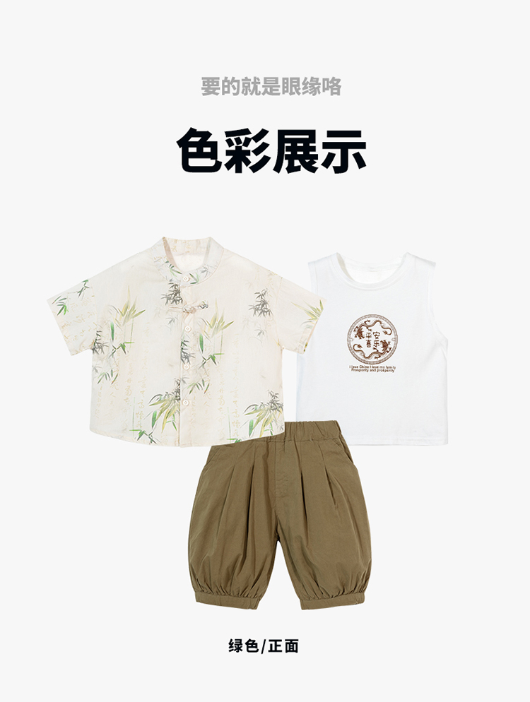 贝贝怡童装男童纯棉套装三件套夏季新款衬衫中国风t恤五分裤夏装
