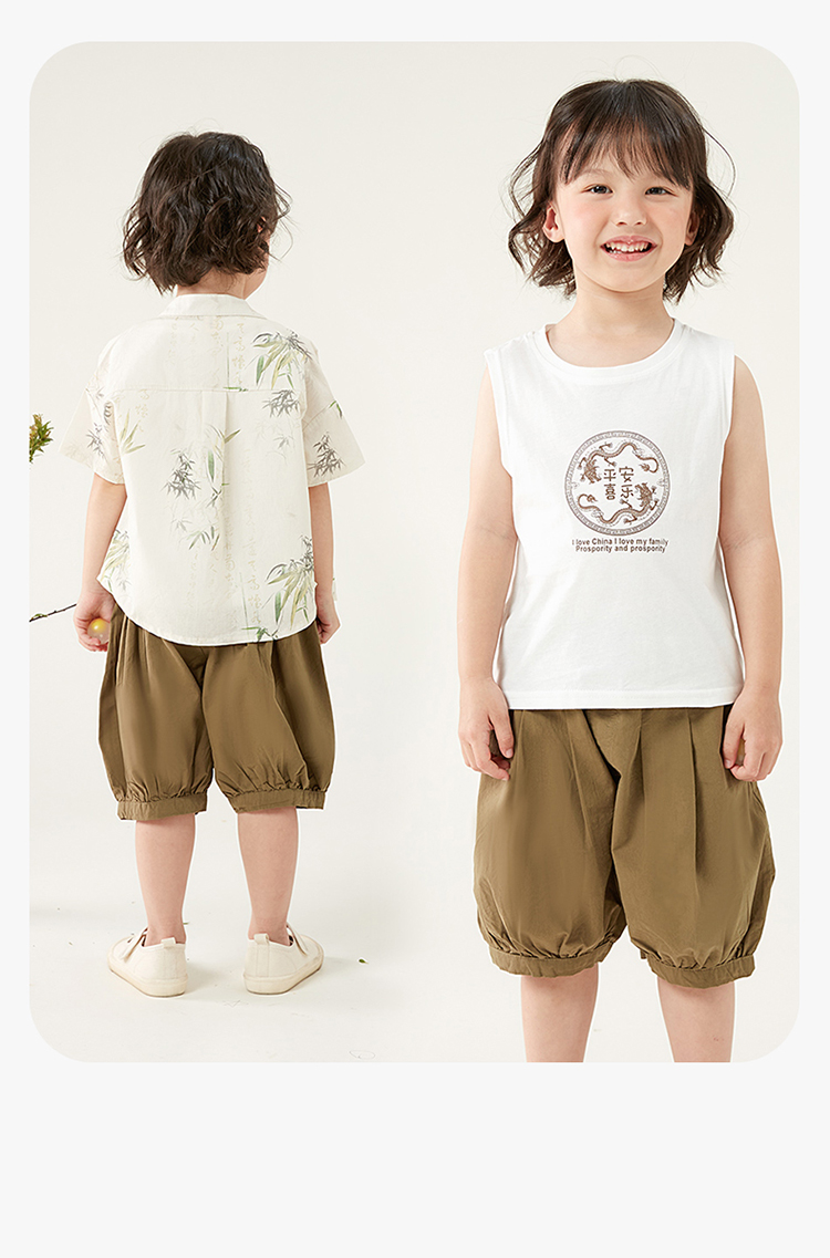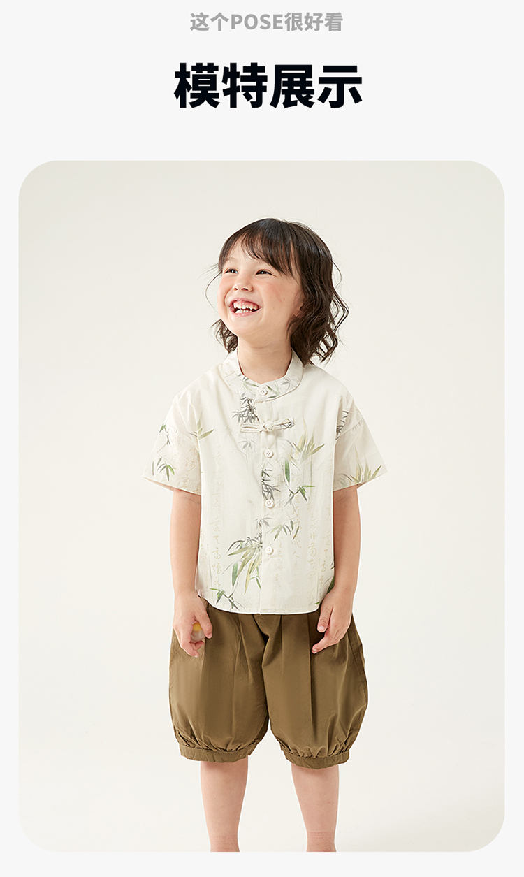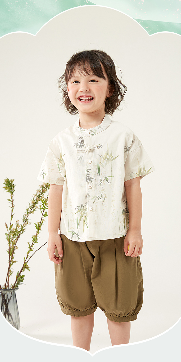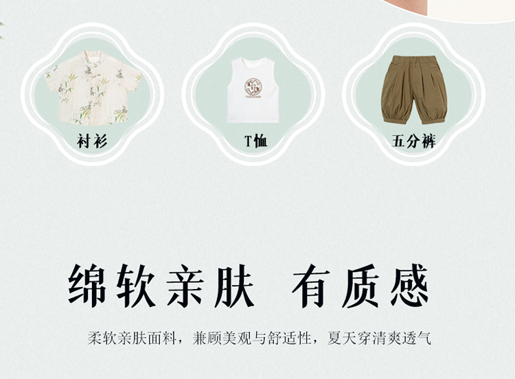 贝贝怡童装男童纯棉套装三件套夏季新款衬衫中国风t恤五分裤夏装