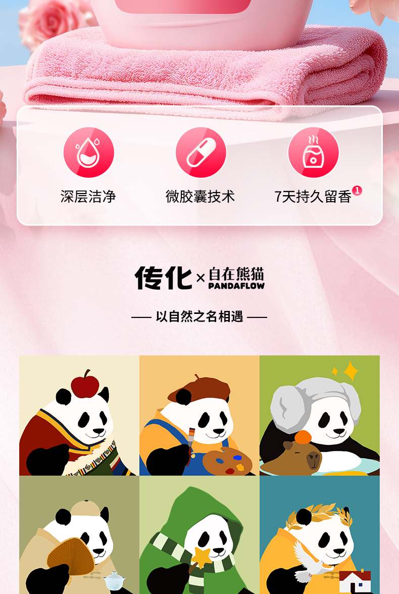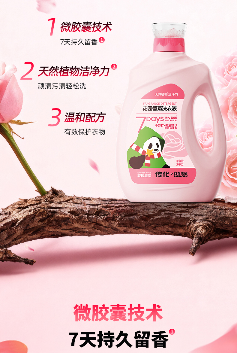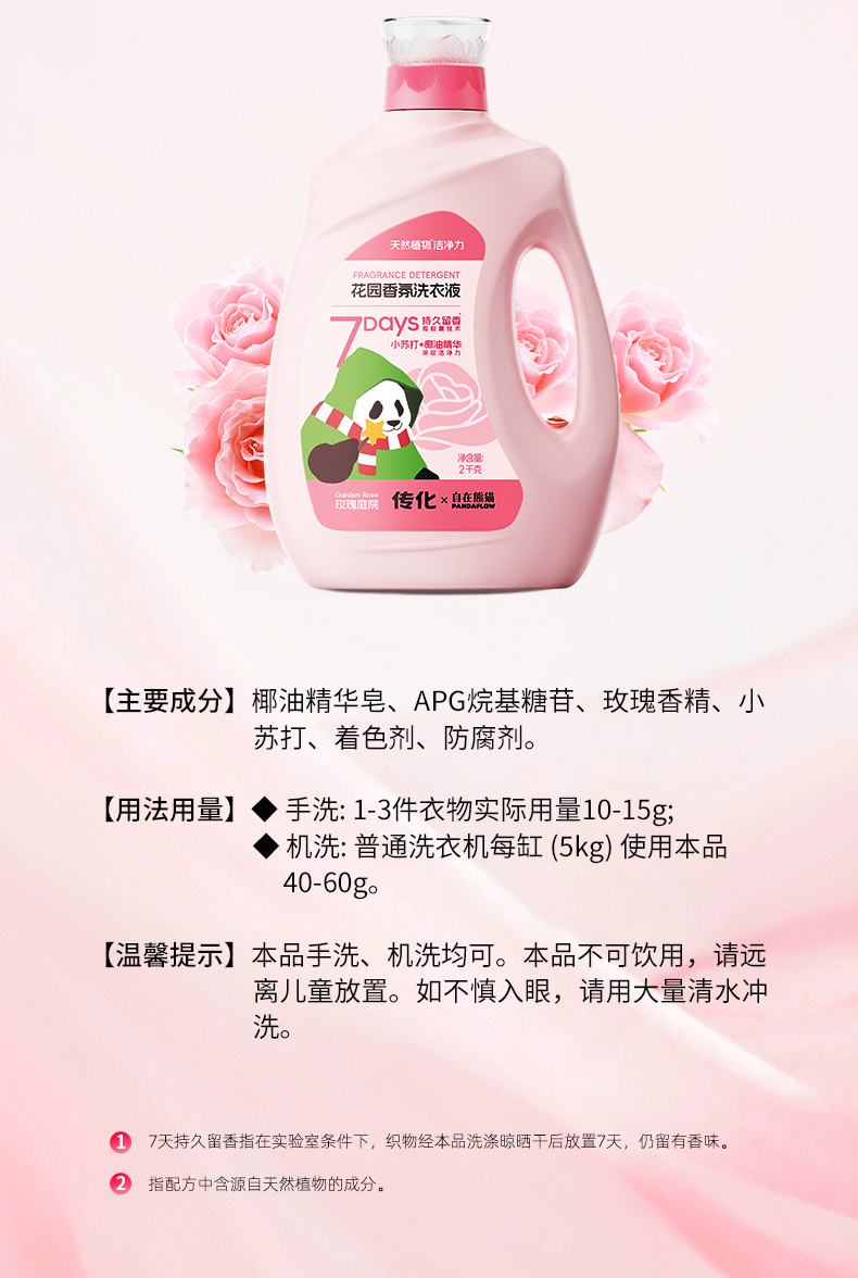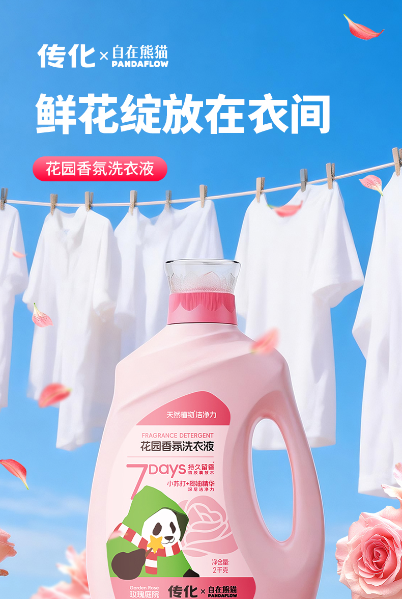 【联名款】传化x自在熊猫传化花园香氛洗衣液2kg