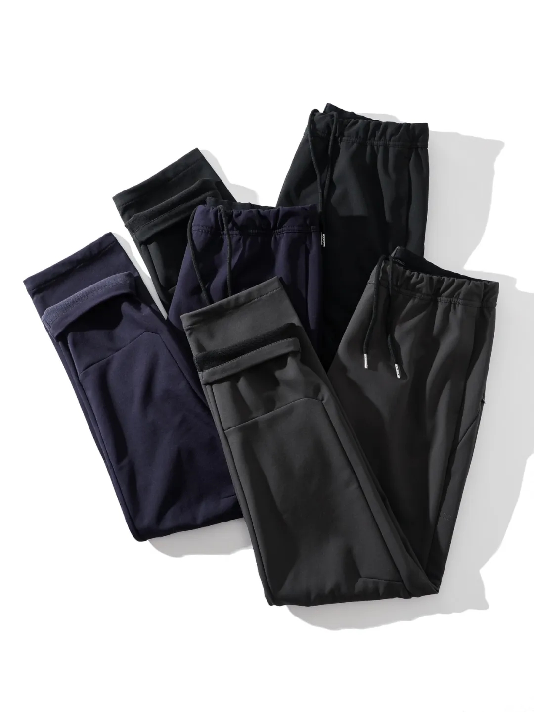D110612户外机能风加绒保暖微弹纯色软壳裤 抗撕裂三防功能性裤子休闲裤