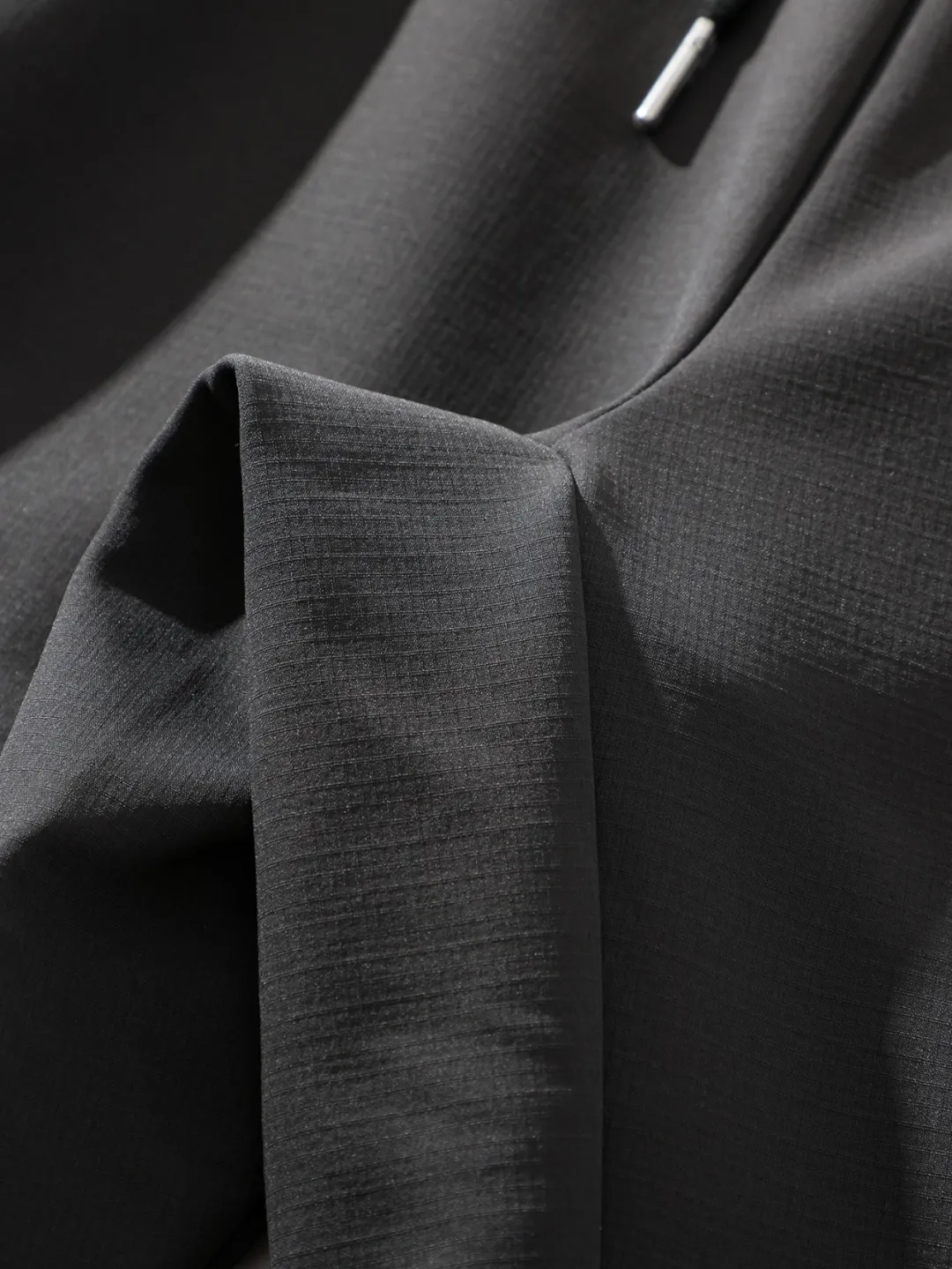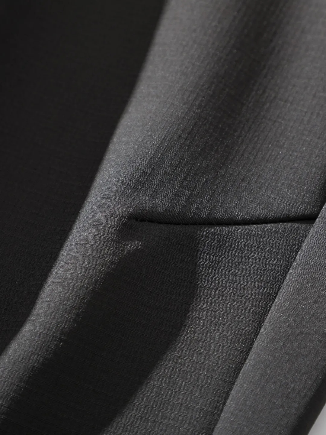 三防加绒保暖机能梭织软壳裤!砖业性能与功能简约美学的融合,是户外秋冬季装备的优选之作!梭织工艺赋予裤子挺括质感,纤维间紧密交织,形成坚韧的结构,不易变形起皱,穿着者能时刻保持利落外观!裤身小方格纹理规整有序,自带浓浓羔级感,通过抗纤维编织技术抗磨损性提高,能很好的适应复杂地形活动!外层为高密度梭织面料,防泼水、防油污、防风的三防工艺处理,有效抵御雨雪及污渍的侵袭,实现动态排湿!内层复合细腻舒适伽玛绒,形成高效保暖层,有效阻隔外界冷气,寒冷环境中为双腿锁住温暖,保持体感舒适!裤子版型遵循人体工程学的原理,3D立体裁剪,多块独立裁片精准拼接,贴合人体运动曲线,活动自如无束缚!腰部采用的是加宽松紧带加内置抽绳设计,穿着舒适方便穿脱调节无束缚感,能妥妥的满足户外休闲运动需求!