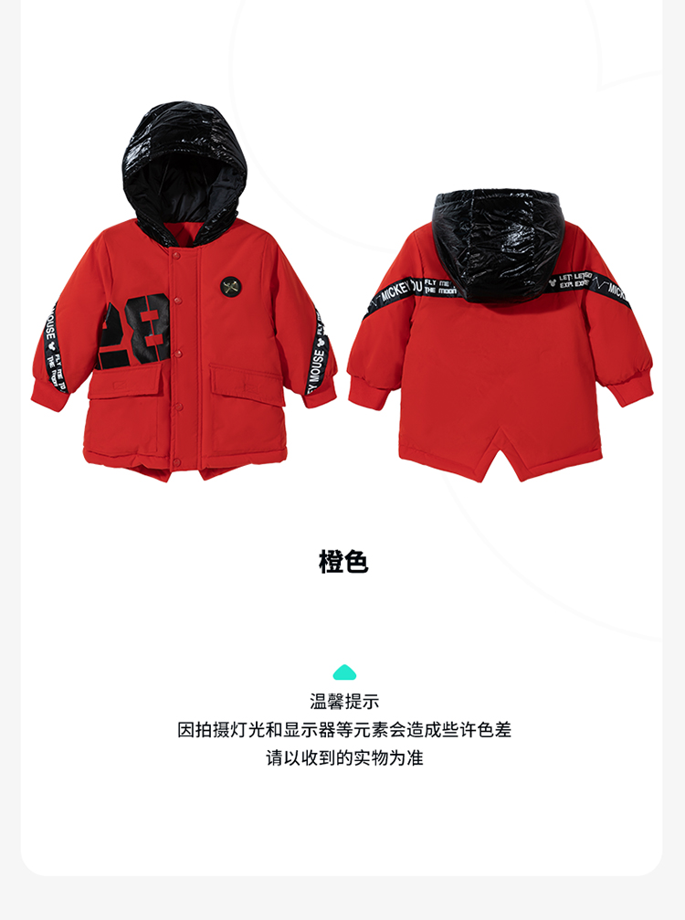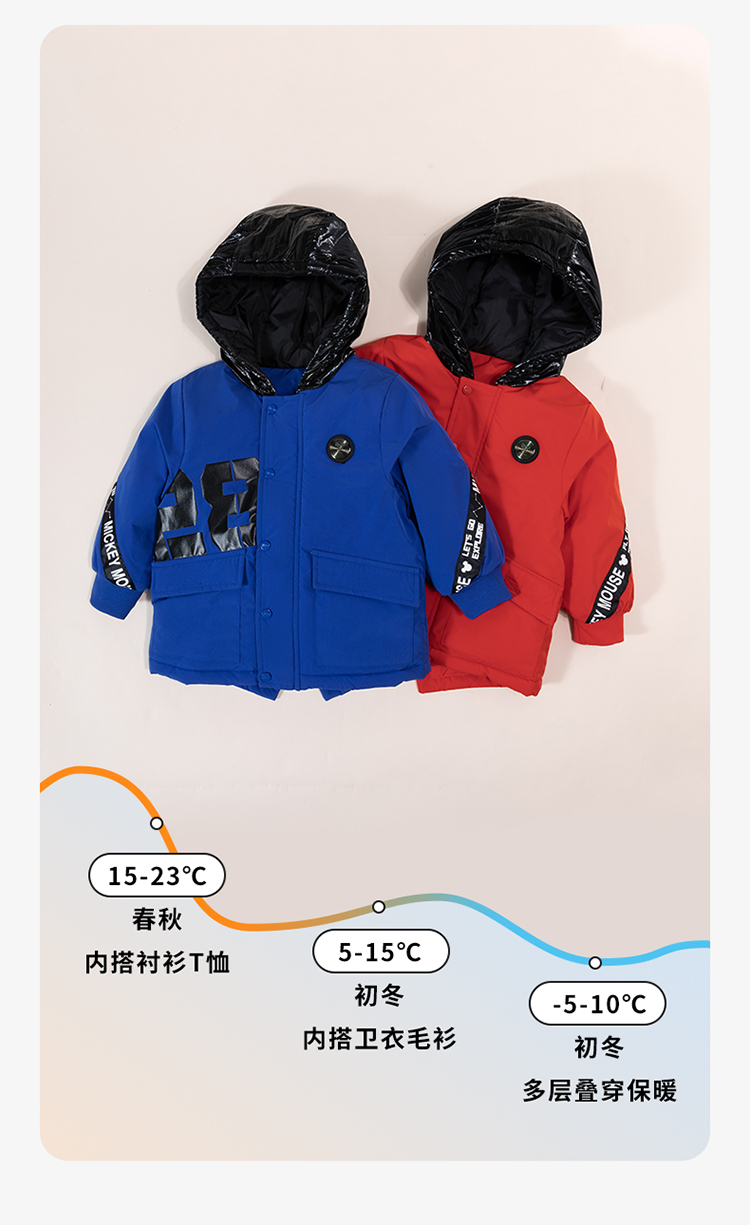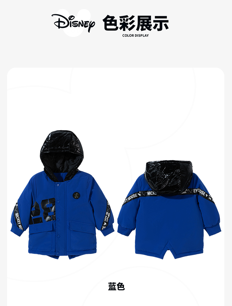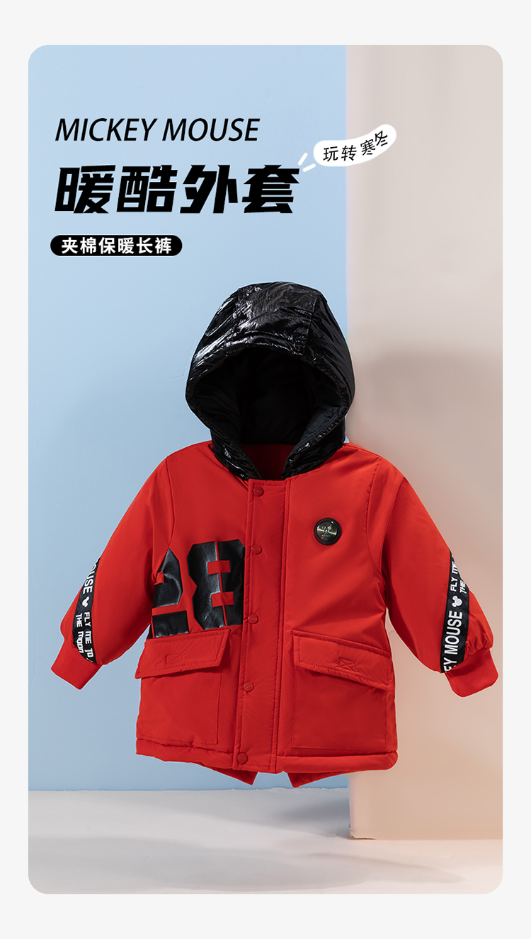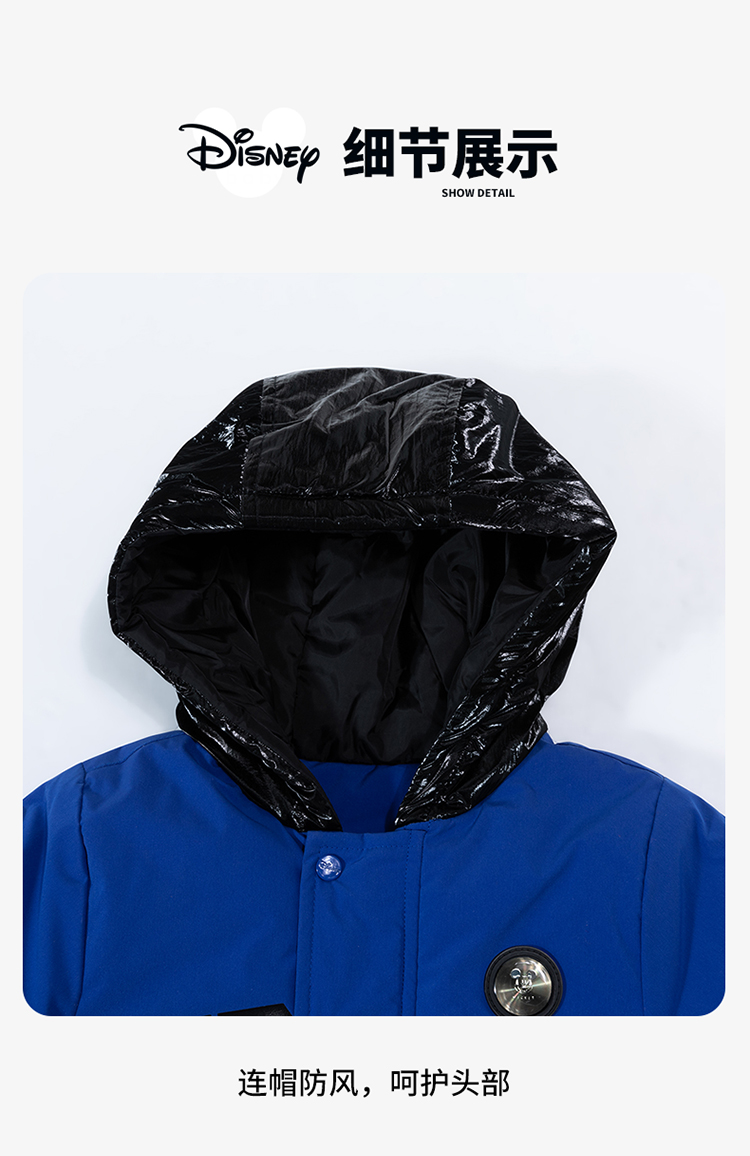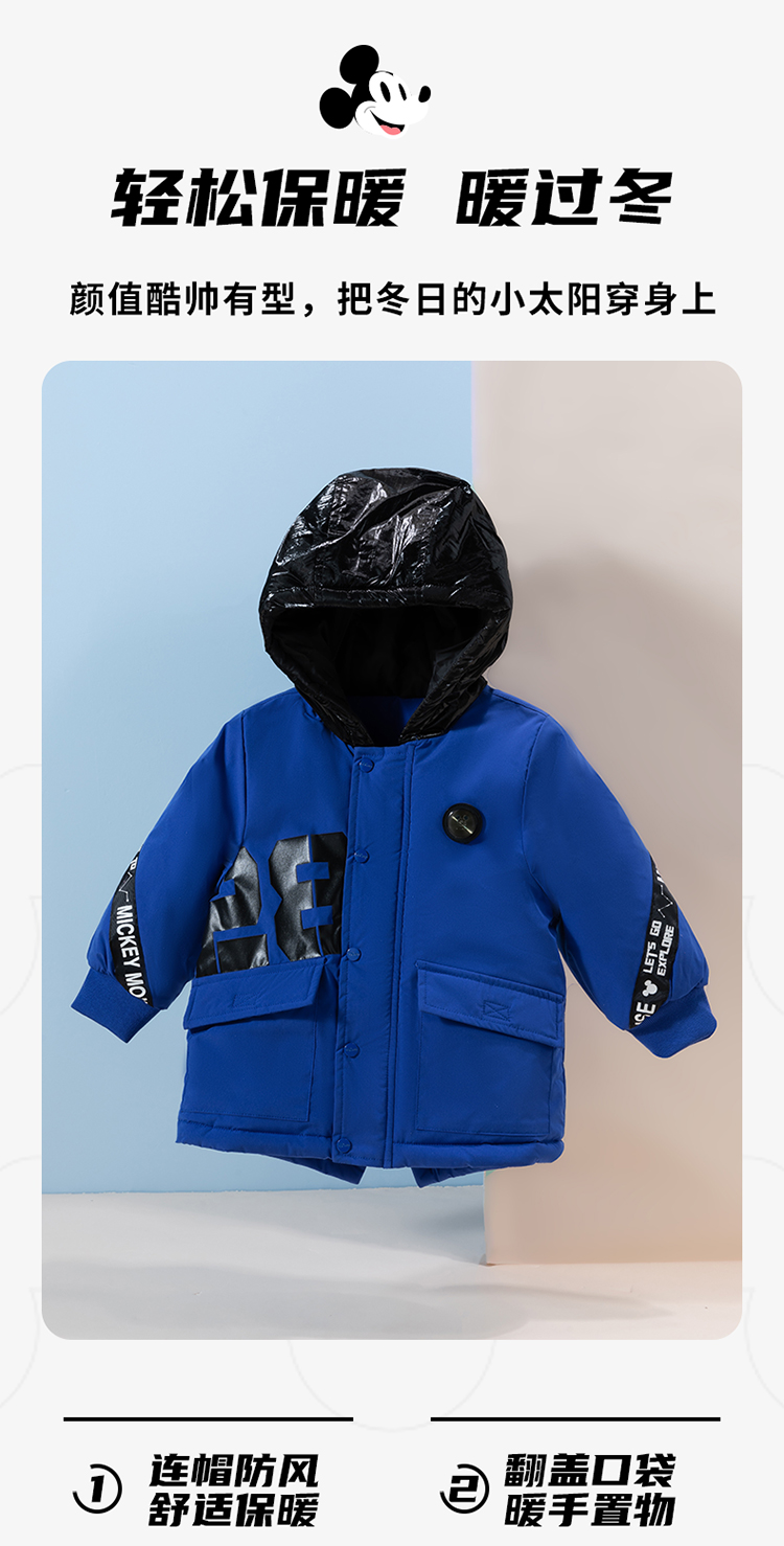 迪士尼童装秋冬季男童连帽防风夹棉外套潮男孩保暖加厚棉服冬装