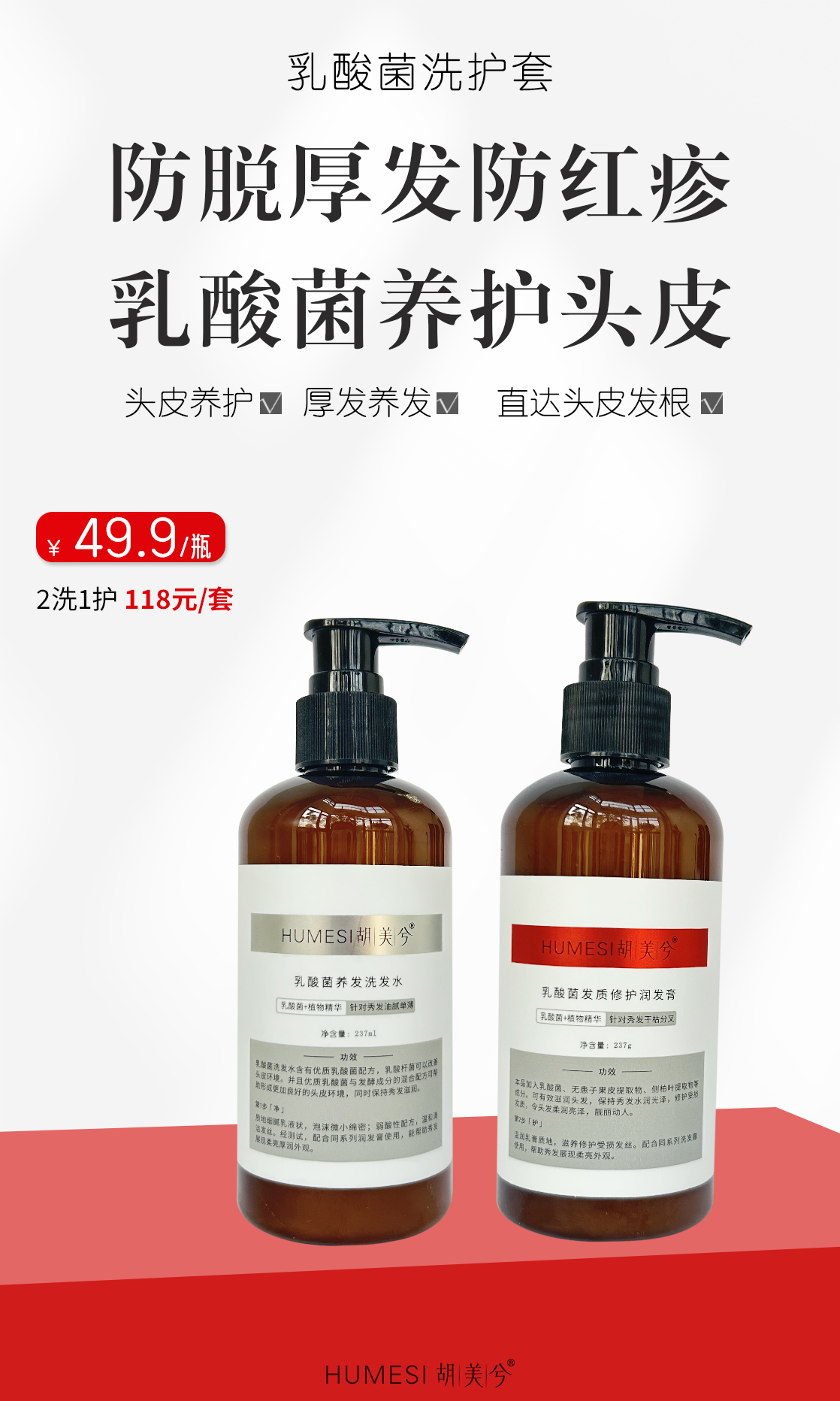 实验室定制| 乳酸菌头皮头发护理套237ml/瓶|蓬松厚抗脱