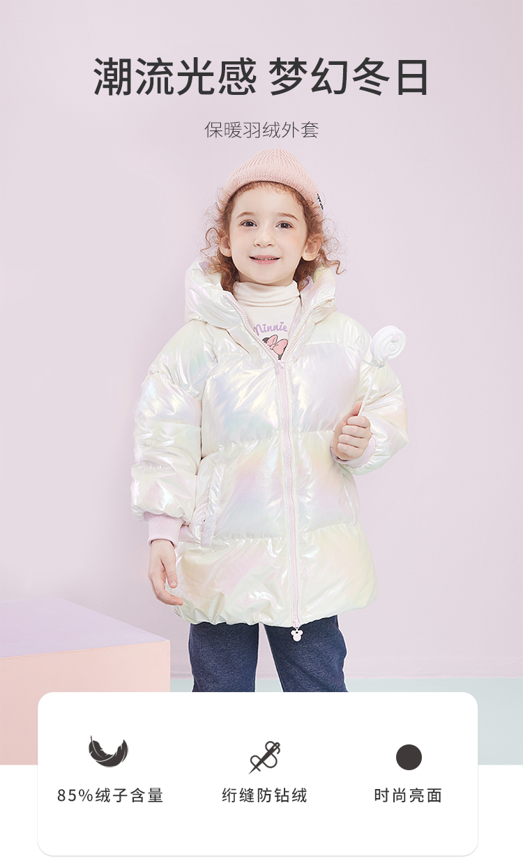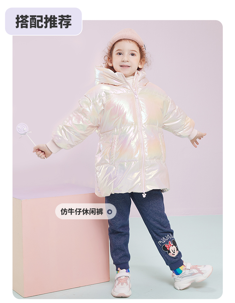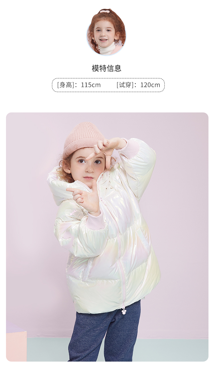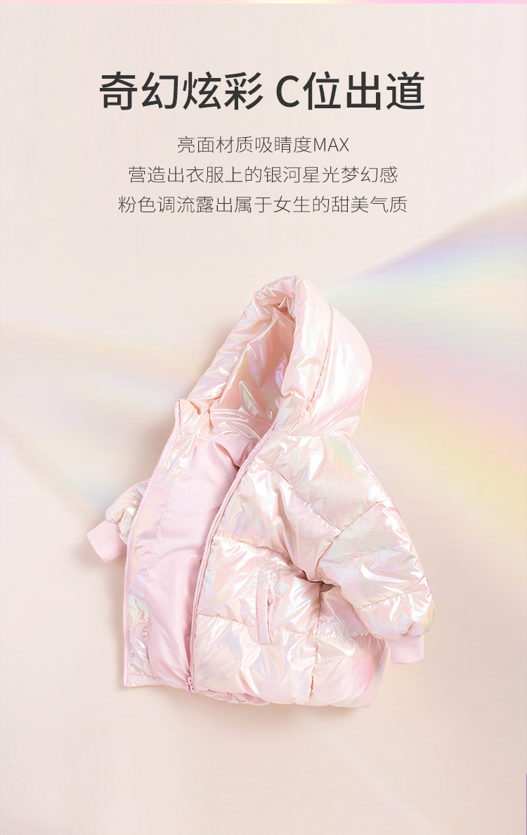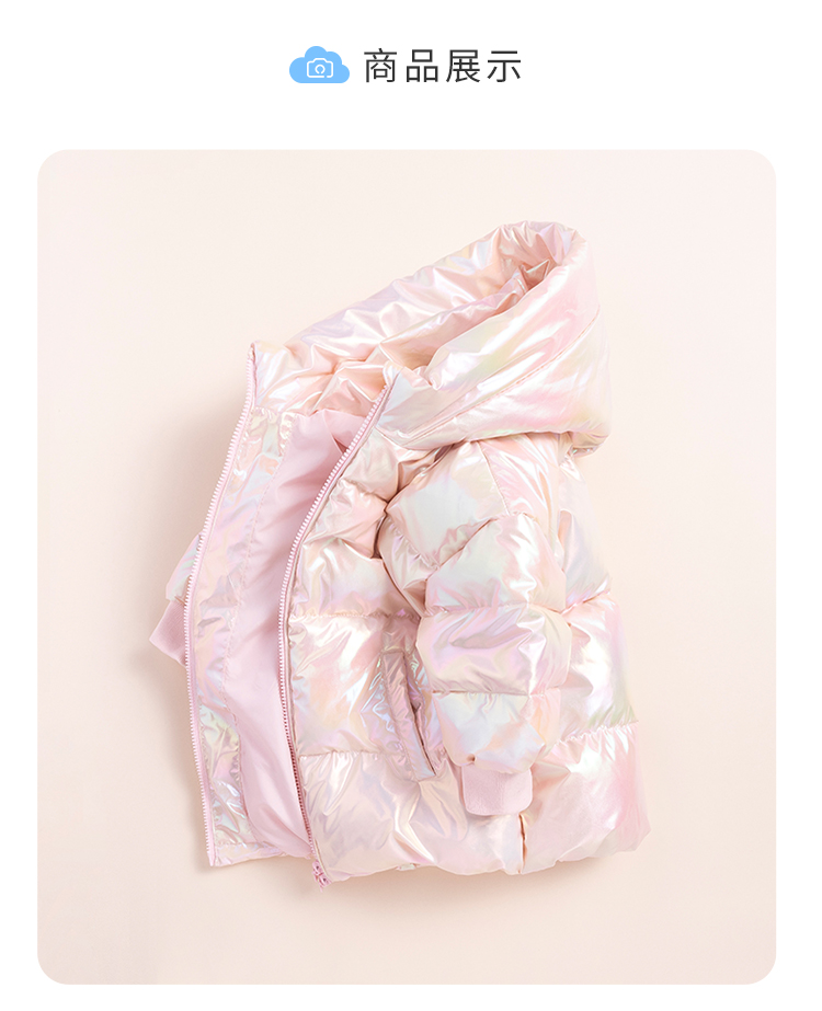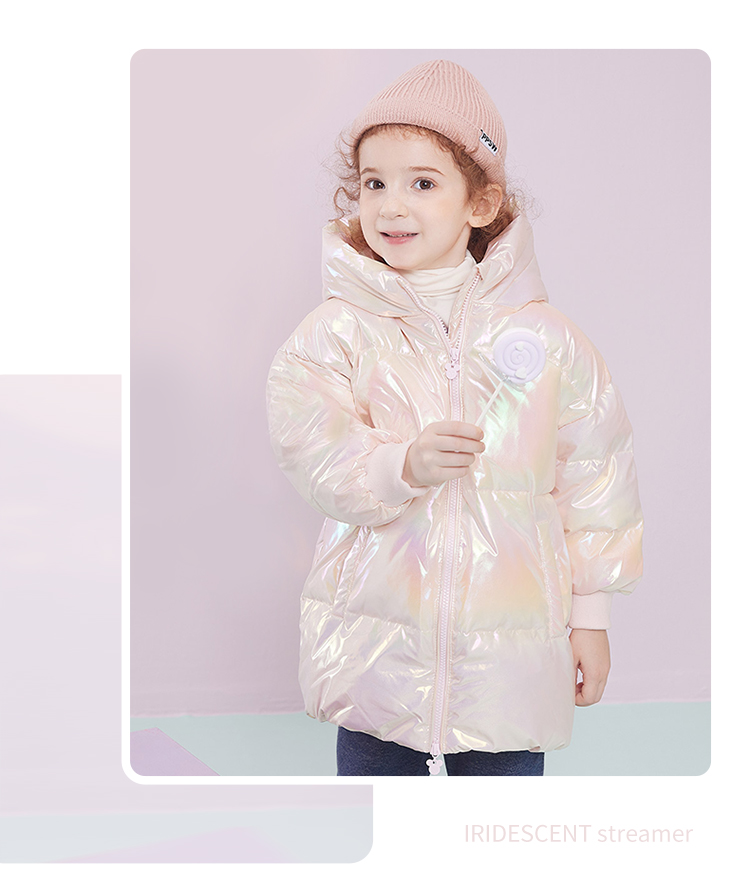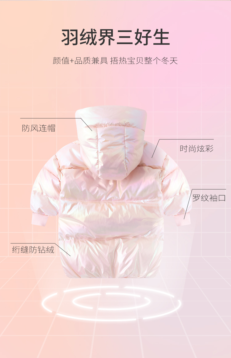 贝贝怡官方儿童羽绒服白鸭绒亮面炫彩女童外套防寒冬款网红爆款214S2778
