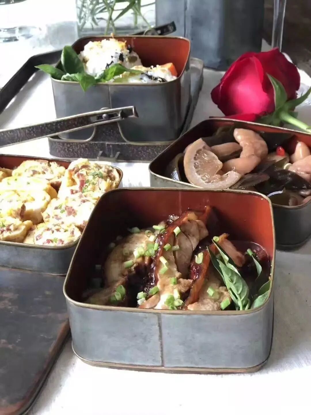 鎏银髹红漆多层餐饮携带盒