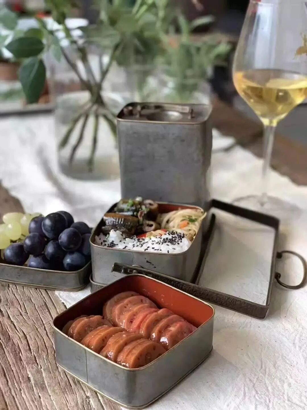 尺寸: 提手长:21.5厘米,宽:10.8厘米,高:16.5厘米;酒壶长:10.2厘米,宽:7.6厘米,高:14.8厘米;饭盒底层,长:11.3厘米,宽:10.5厘米,顶层长:11厘米,宽:10厘米,高:14.5厘米。总重量:763.8克。
