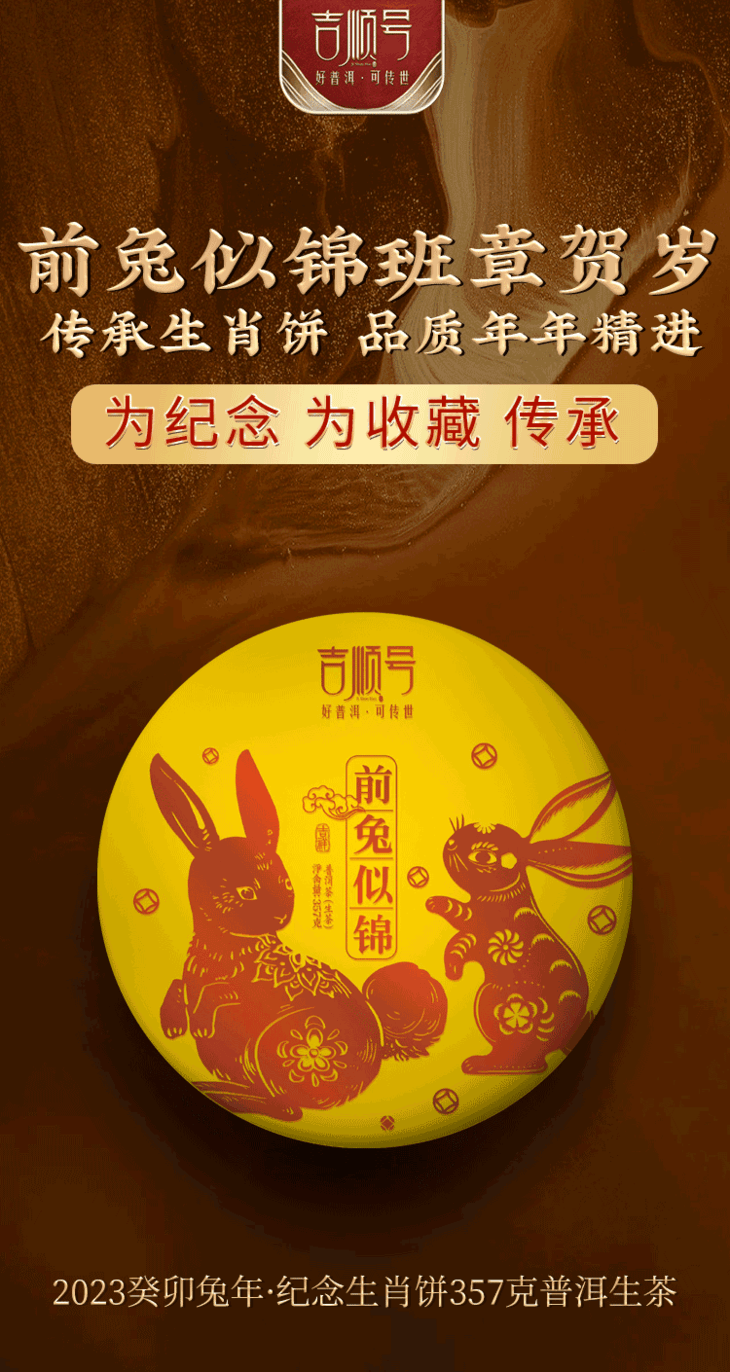 2023年生肖纪念饼《前兔似锦》布朗山春茶357克