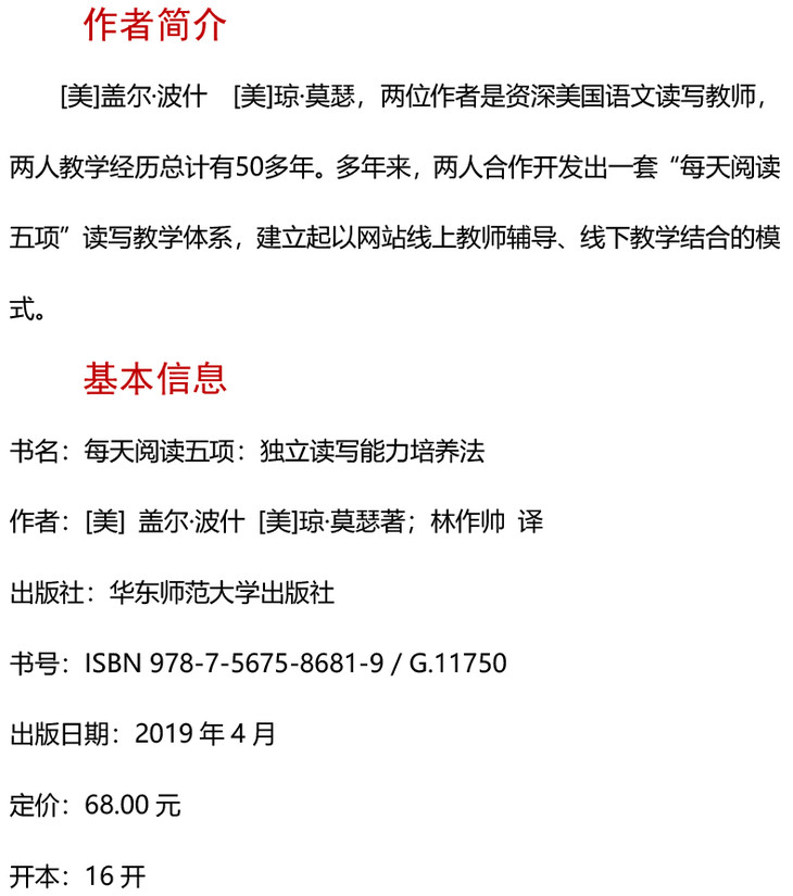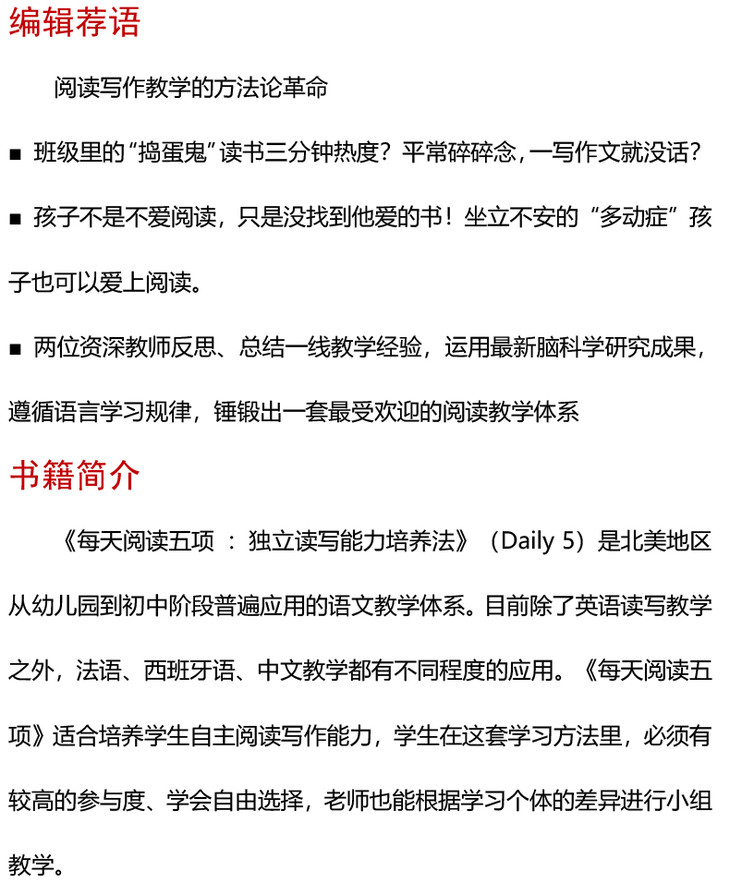每天阅读五项 独立读写能力培养法 全世界都在用的读写教学法 阅读写作教学体系