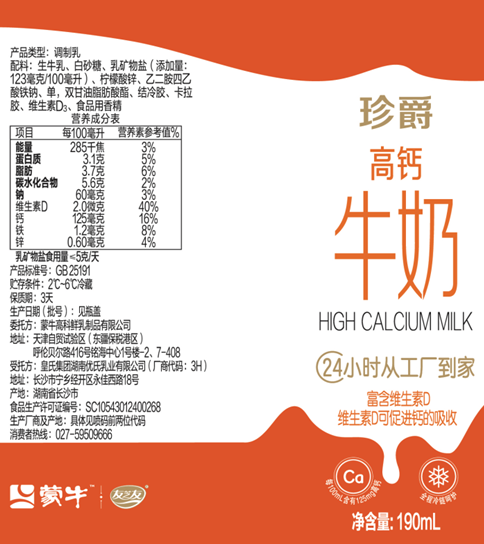 【蒙牛—珍爵】高钙牛奶 玻璃瓶190ml/瓶, 武汉三环内每日清晨配送上门(30天/90天/180天)