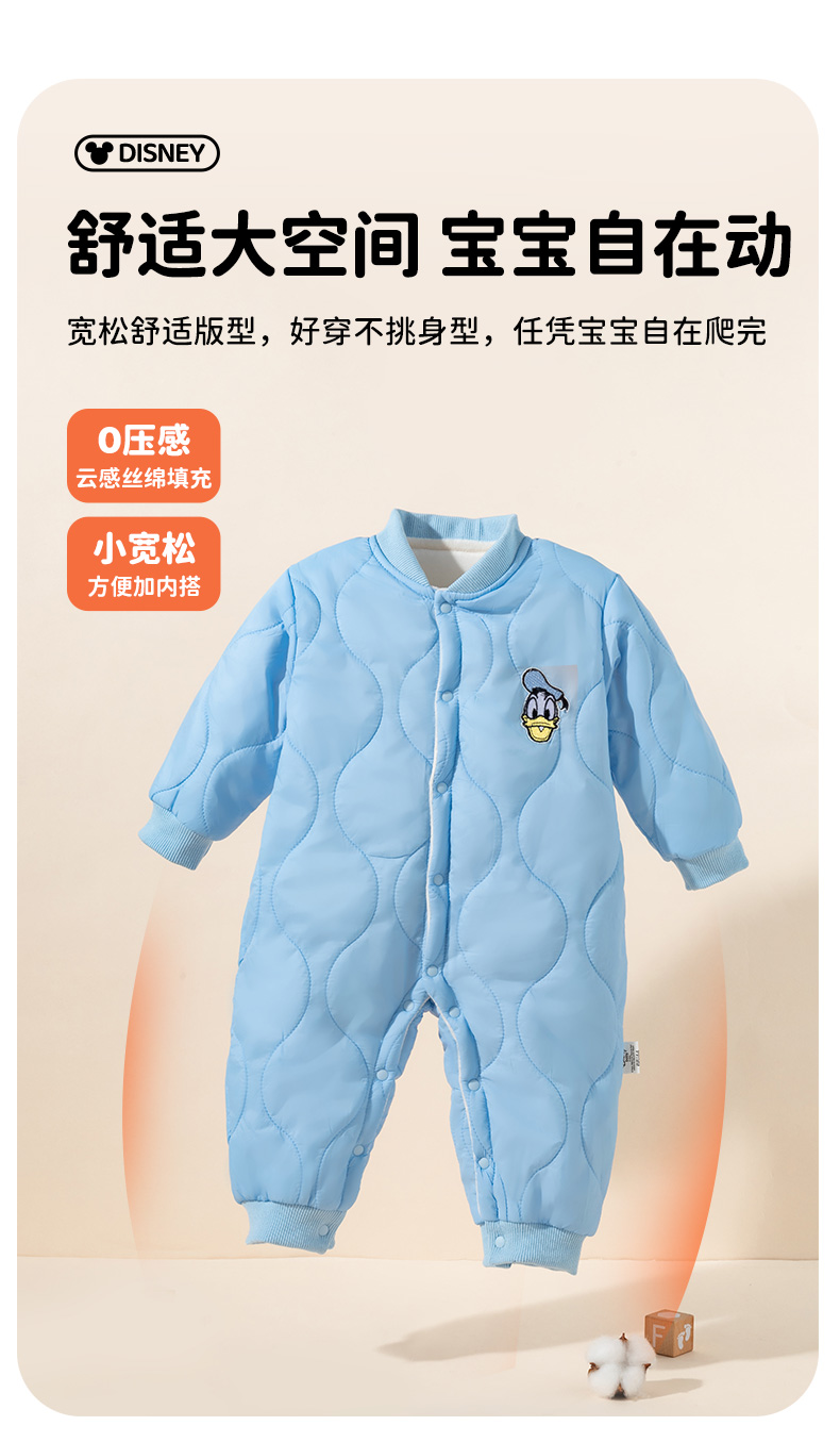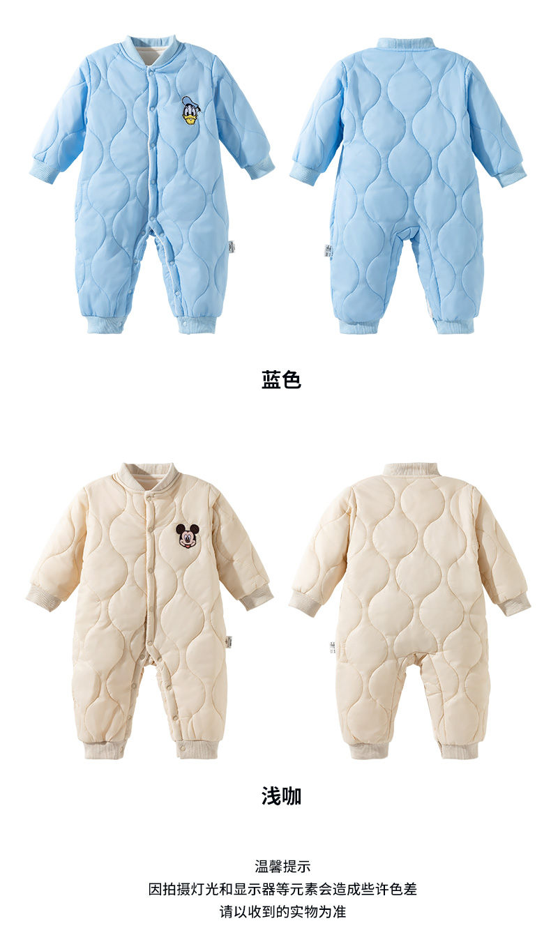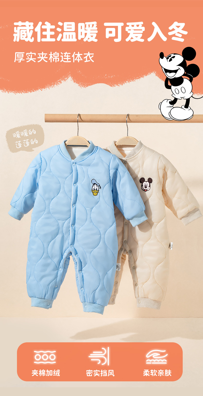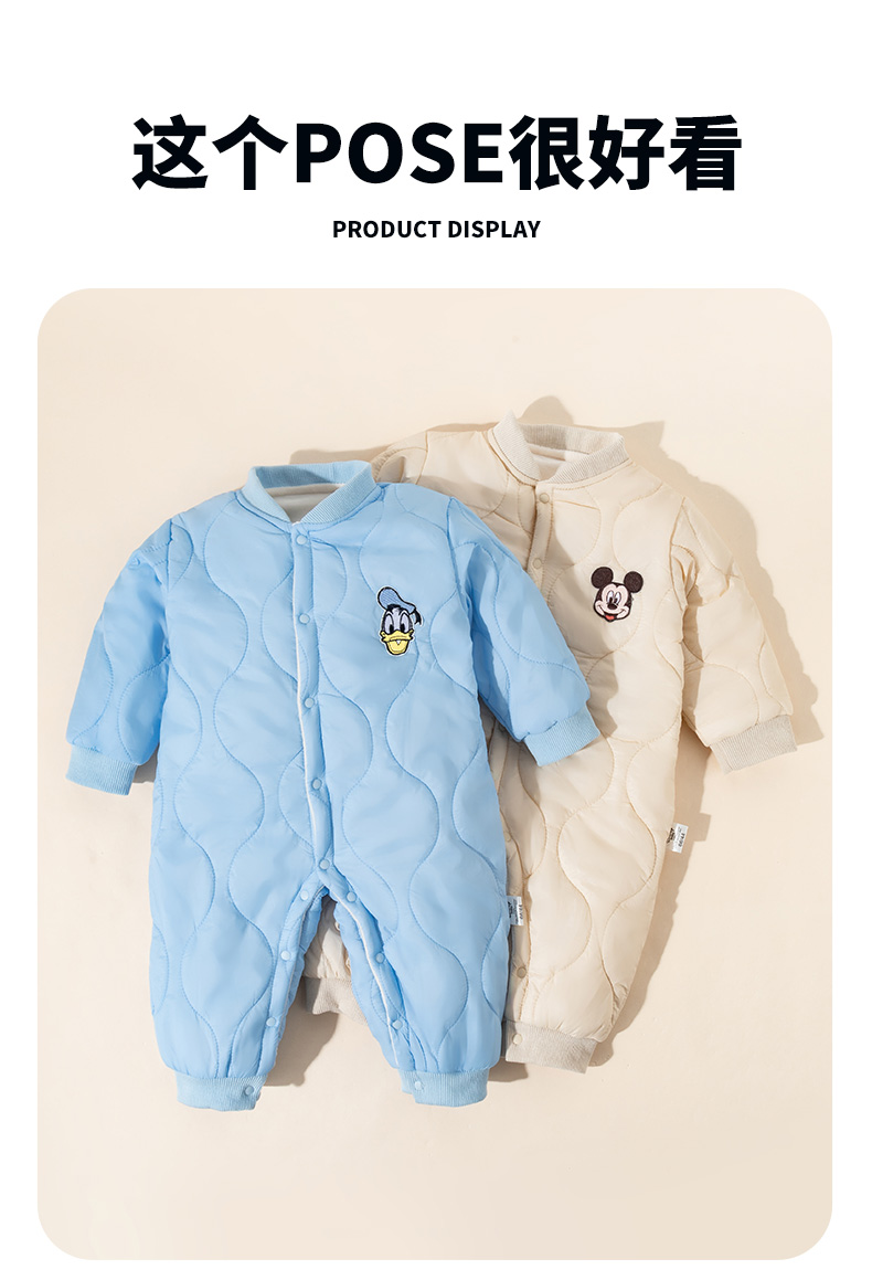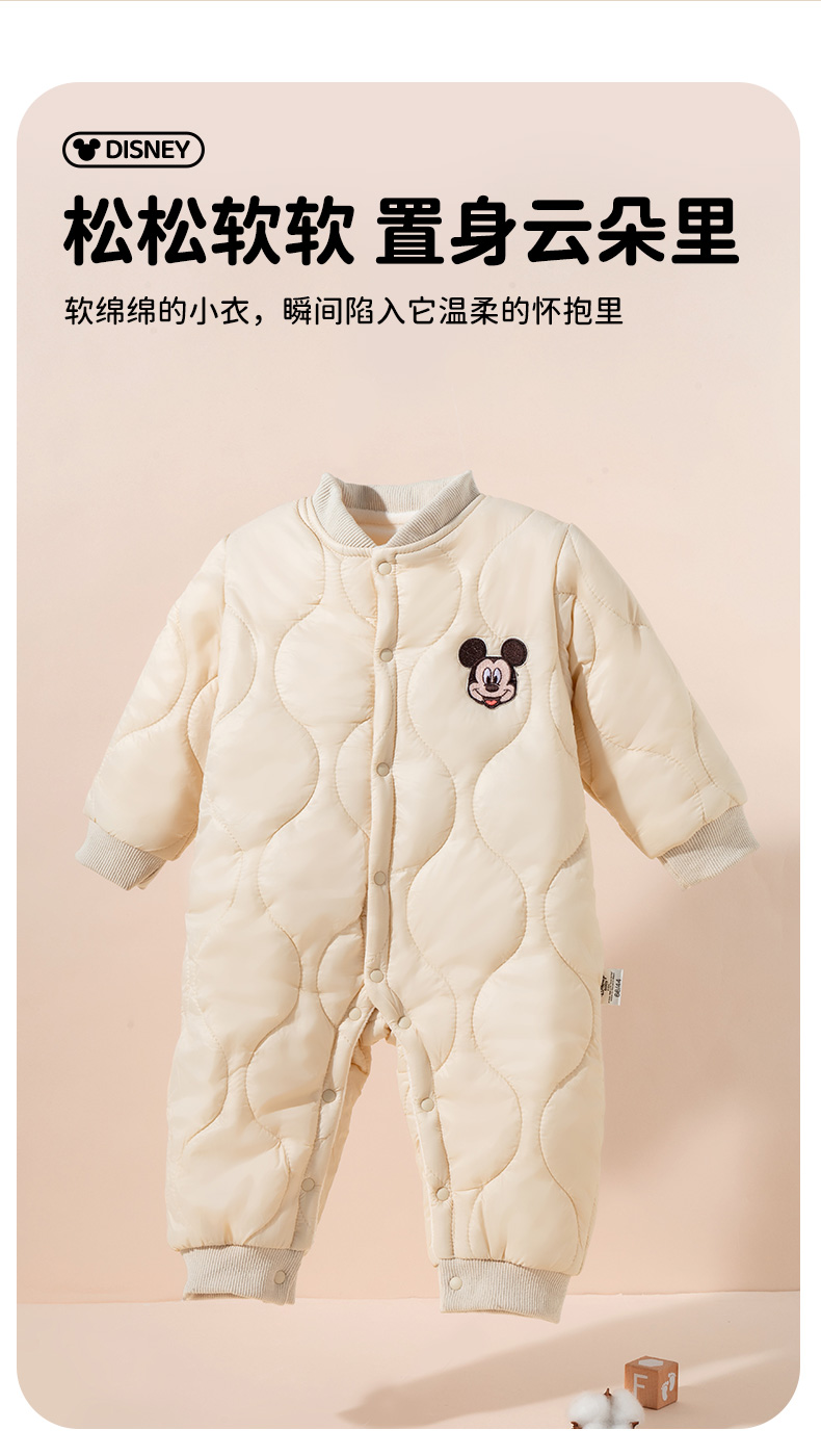 迪士尼【加厚夹棉】24冬季新款男宝哈衣防风保暖外穿连体衣卡通爬爬服ZD4DL021