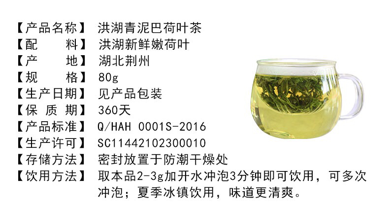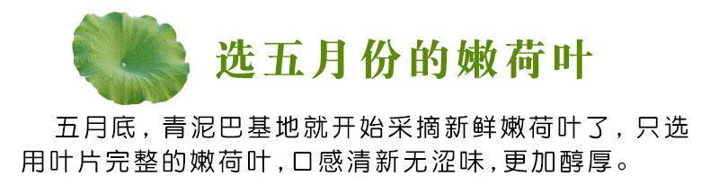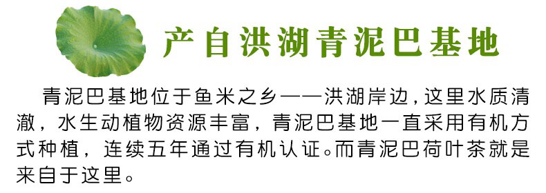 洪湖青泥巴荷叶茶精选5-6月鲜嫩荷叶,只要荷叶裙边部分,30斤荷叶出1斤茶,高温蒸汽杀青技术——揉捻——烘干——提香,把荷叶中的水分提到极致,完全靠荷叶自身干燥度来保证荷叶茶的保质期。这个就是洪湖青泥巴荷叶茶的不同之处。