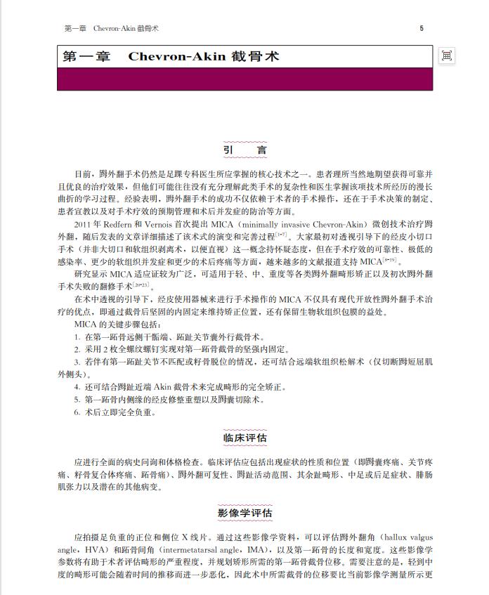 本书涵盖了当今足踝外科微创手术(MIS)的各个方面。在一本图文并茂、易于理解的参考资料中,这本前沿文本提供了有关技术的崭新进展和实用指导,这些技术可以进行锁孔切口、降低感染风险、减轻疼痛和缩短术后恢复时间。原作者作为北美现代MIS足踝手术先驱,确保了本书成为当今锁孔手术技术改善病情和减少并发症的首选资源。本书以循序渐进、高度图解的方式涵盖手术技术,包括手术照片、示意图、成像图以及贯穿始终的专家提示。每章采用易于遵循的格式,设计适应证、禁忌证、患者病史和检查、影像学检查、术前计划和准备、手术技术和结果等栏目,为拇囊炎切除术、唇肌和中足融合术、𧿹趾融合术、弗莱贝格病、小脚趾畸形、夏科足、跟骨截骨术、踝关节融合术等提供MIS方面的专家指导,分享国际知名的足踝外科专家的全球经验。