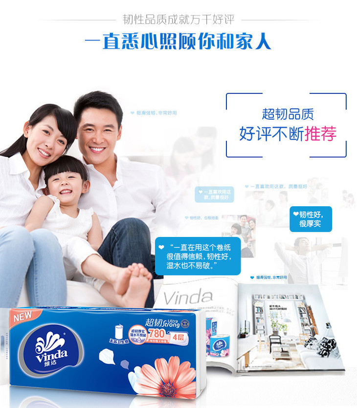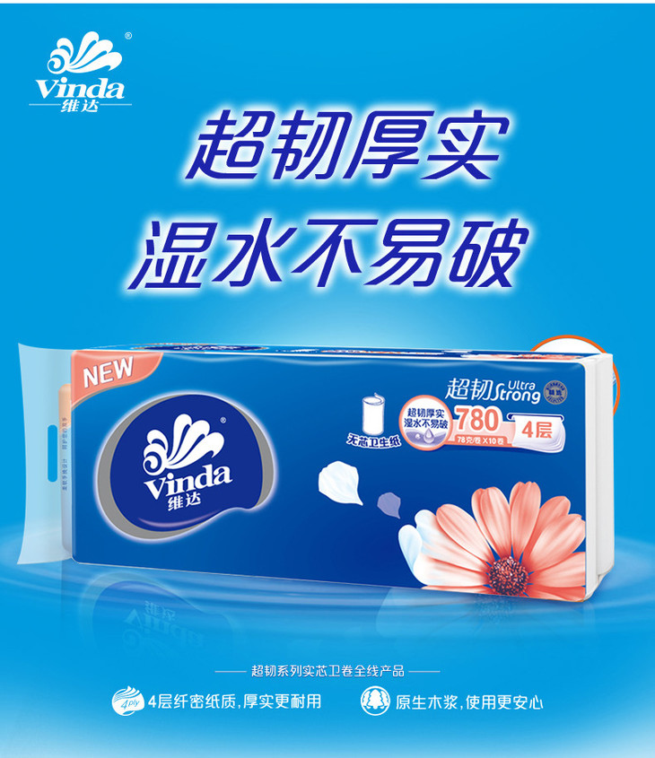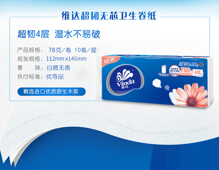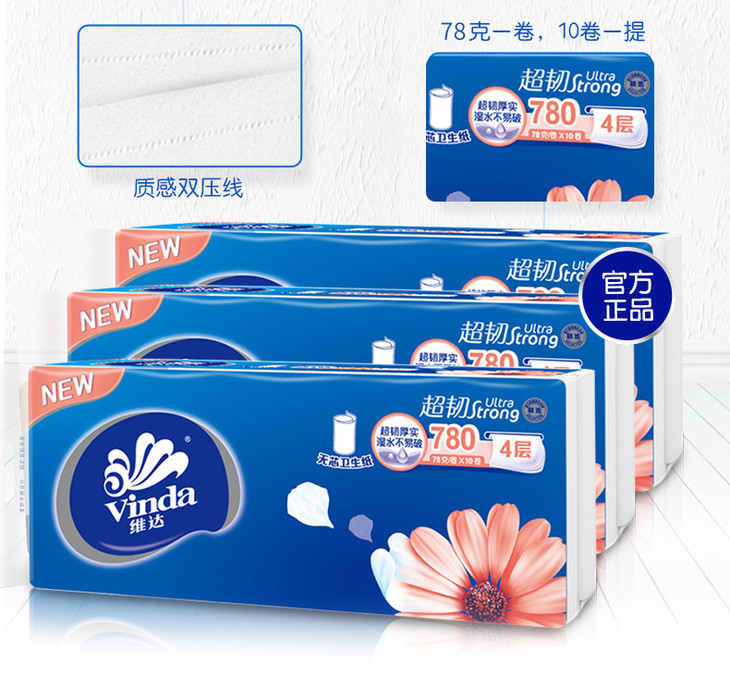 【卷纸】维达无芯卷纸4层10卷780g家用卷筒纸巾厕纸卫生纸