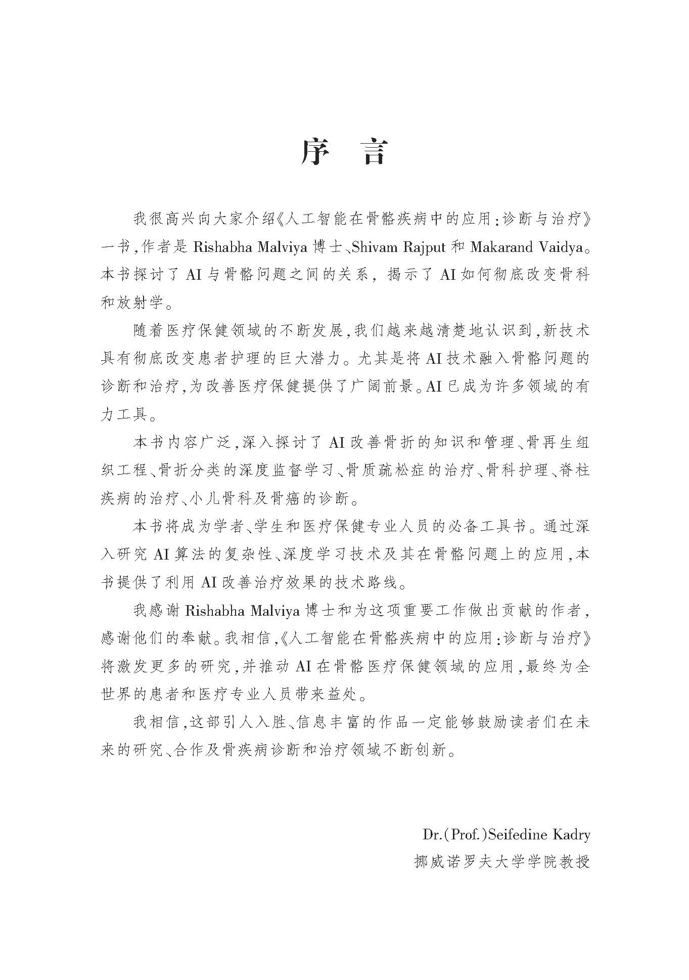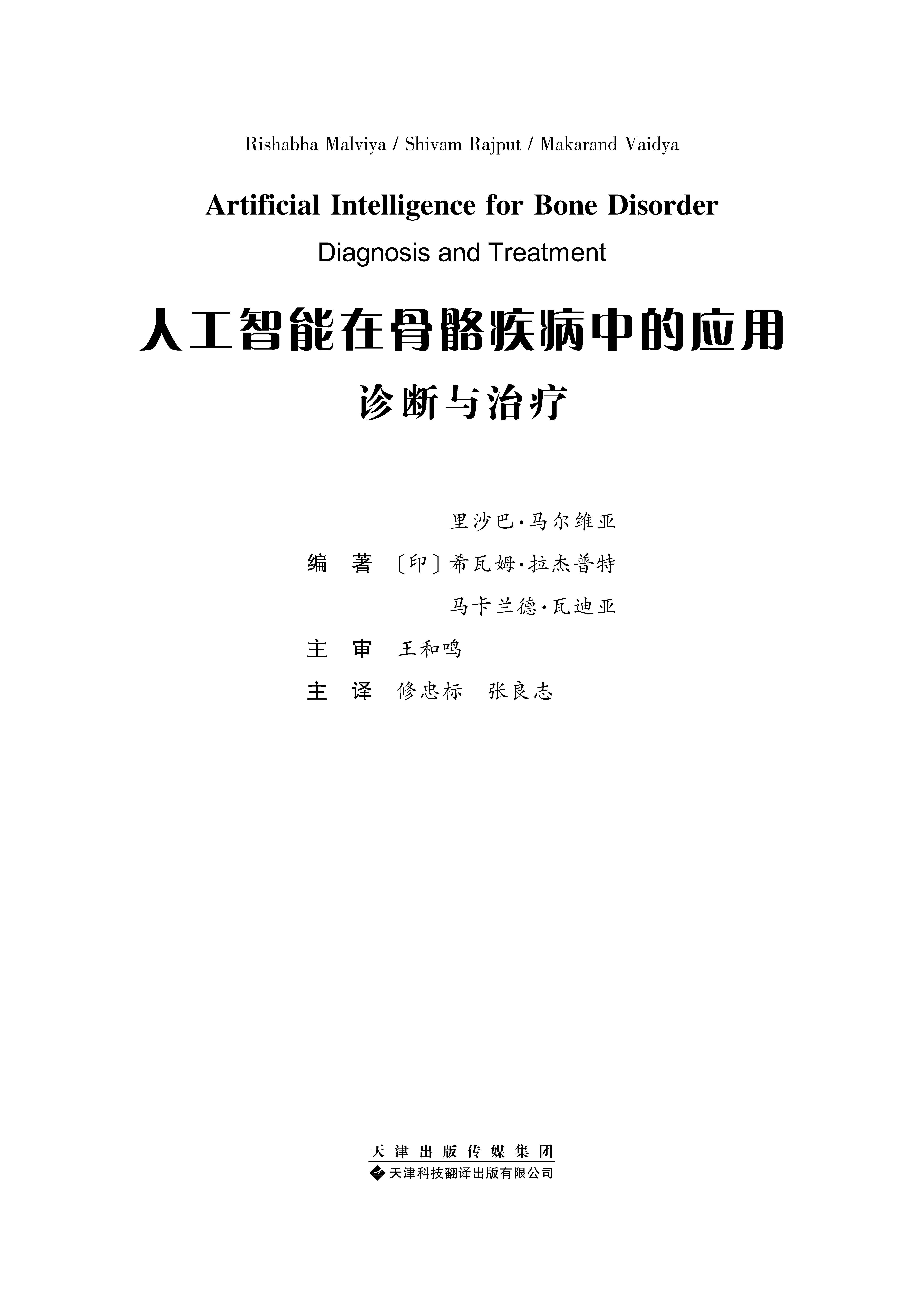 《人工智能在骨骼疾病中的应用:诊断与治疗》,16开(170*240),平装,单色13.5印张,正四背一4印张,216页,定价68元。2026年1月出版。