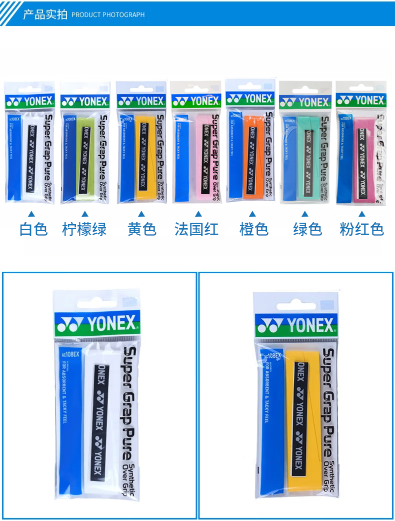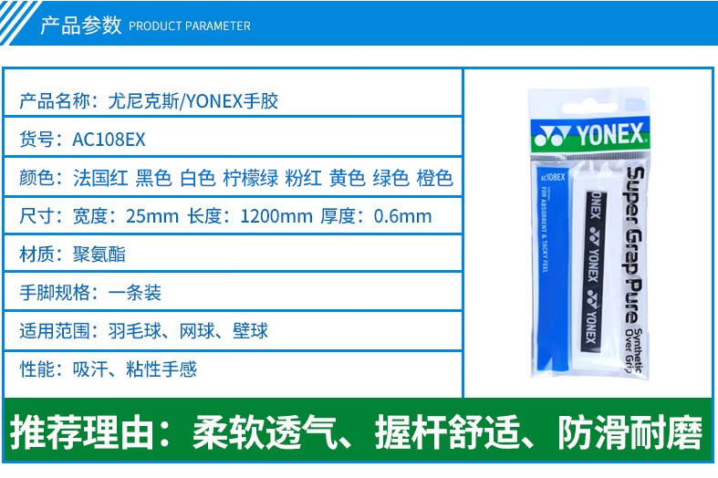 YONEX尤尼克斯AC108EX平面手胶吸汗柔软