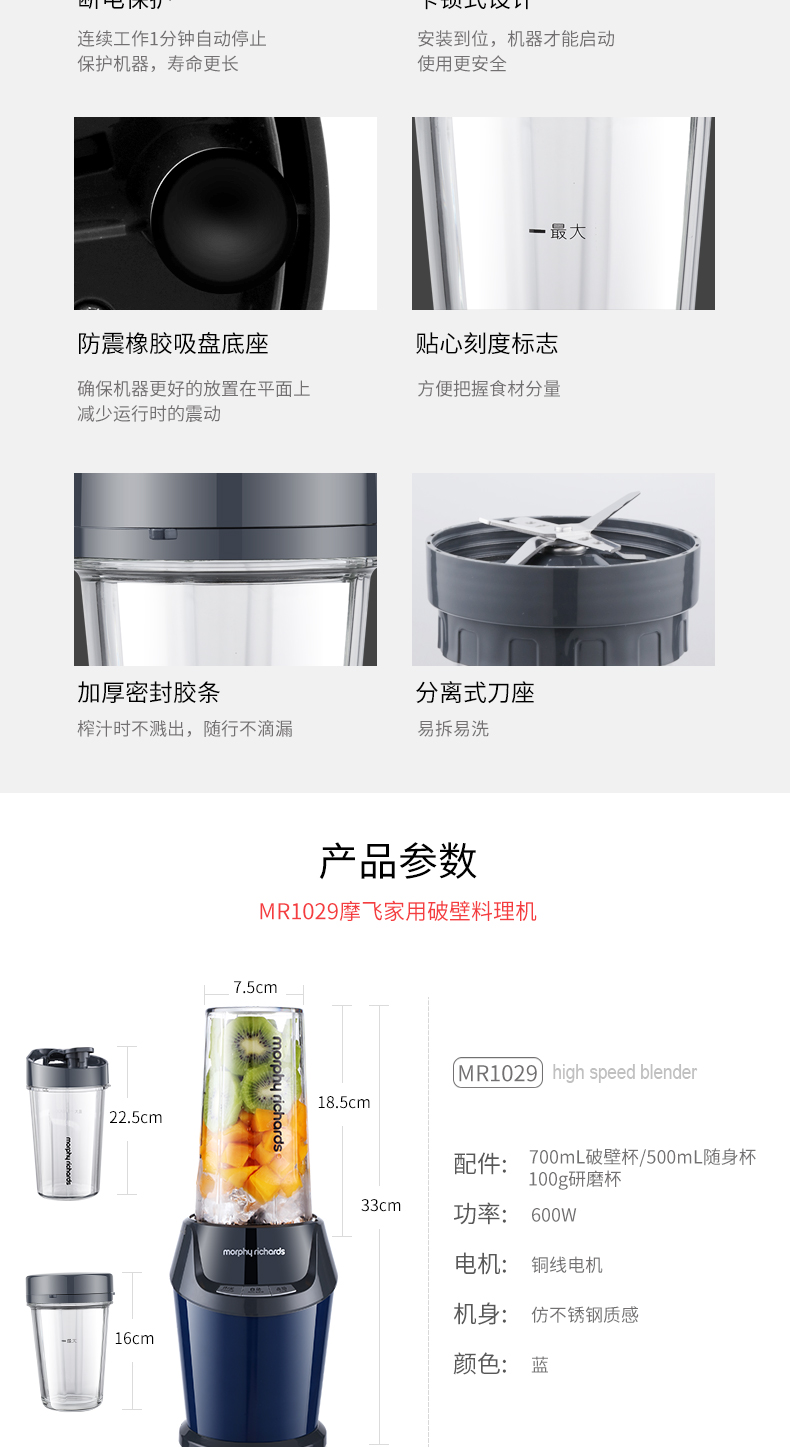 【氧气直购节】英国摩飞MR1029破壁机家用小型自动搅拌破壁料理机家用多功能养生