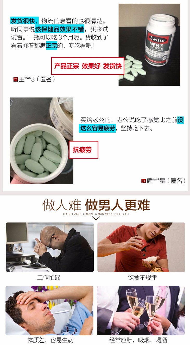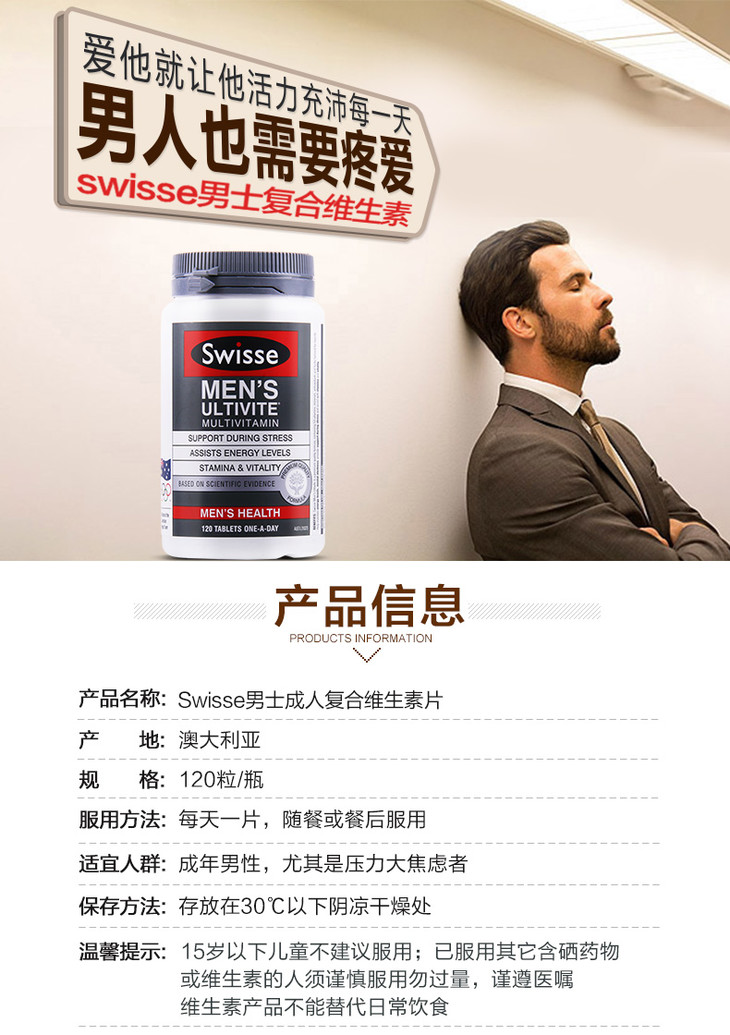 (永久下架)澳洲Swisse瑞思 男士50岁以上维生素 90粒
