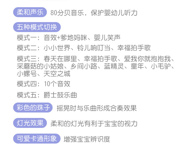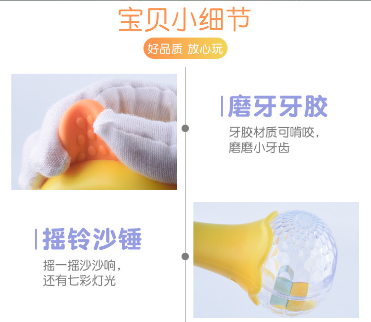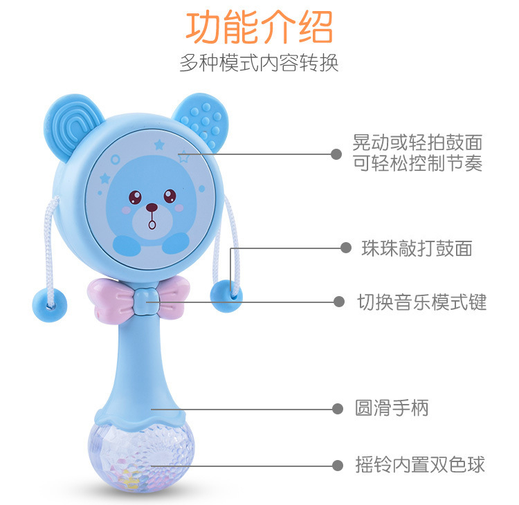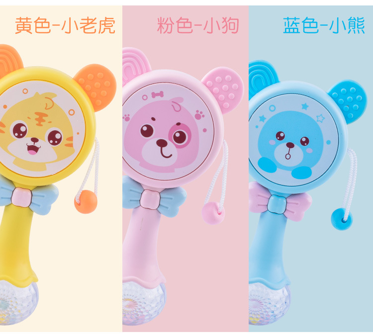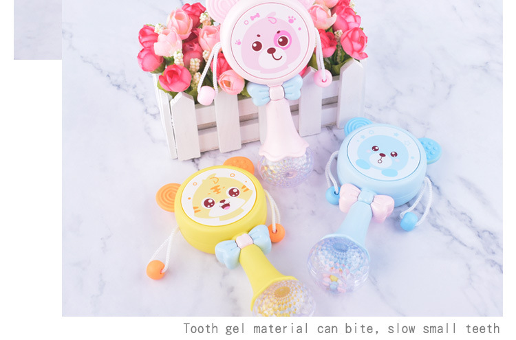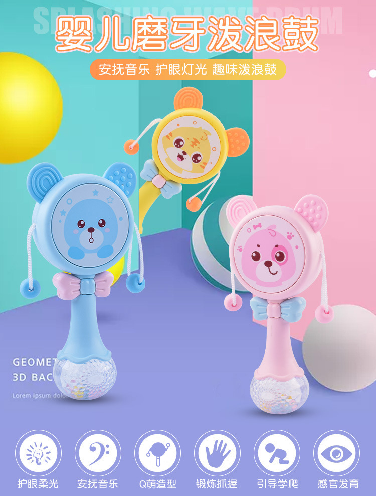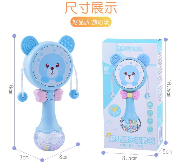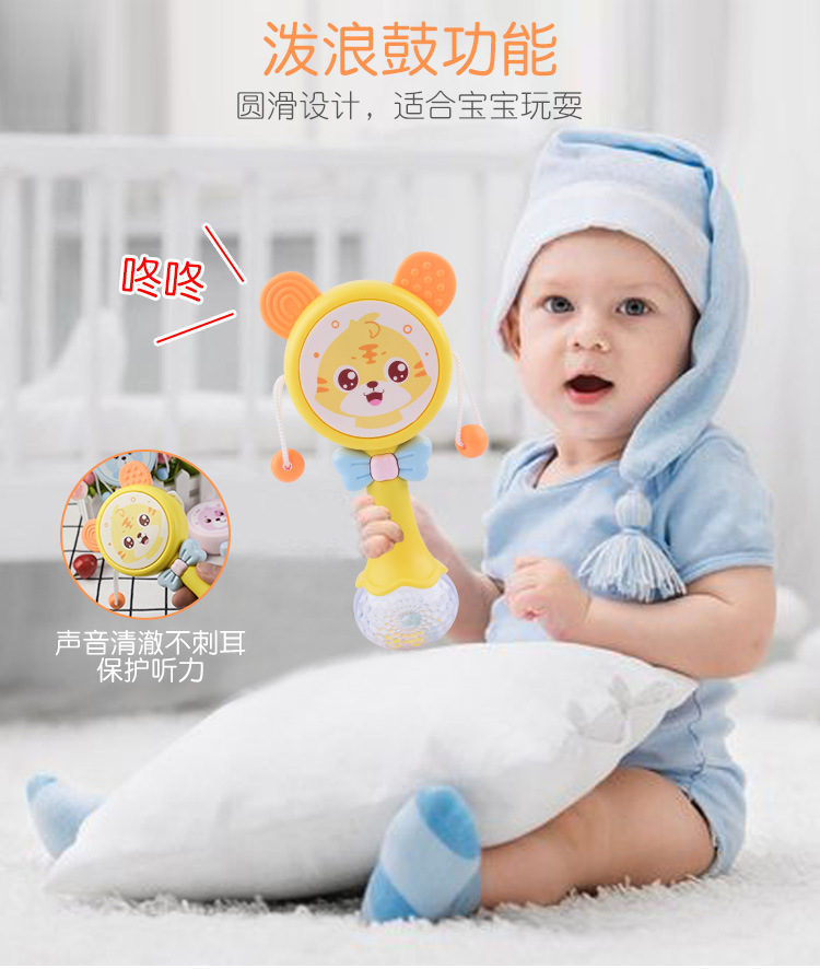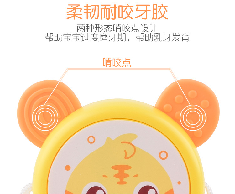 【婴儿可啃咬软胶牙胶摇铃】多功能拨浪鼓 宝宝音乐手摇鼓益智玩具
