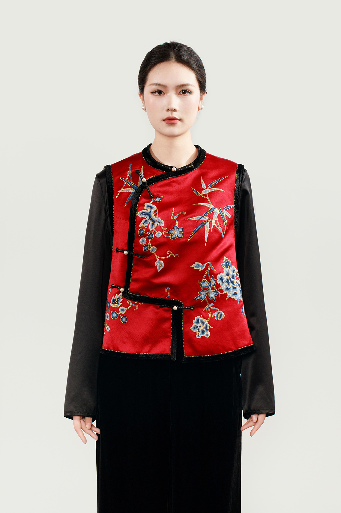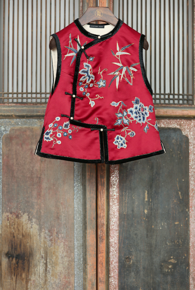 盛唐牡丹大师系列 | 真丝手绣打籽绣偏襟马甲 (盛唐牡丹与非遗传承人王小潇联名系列)