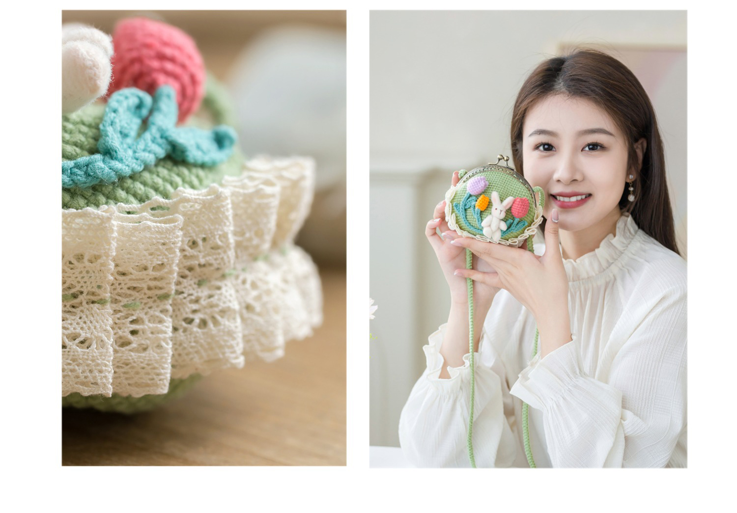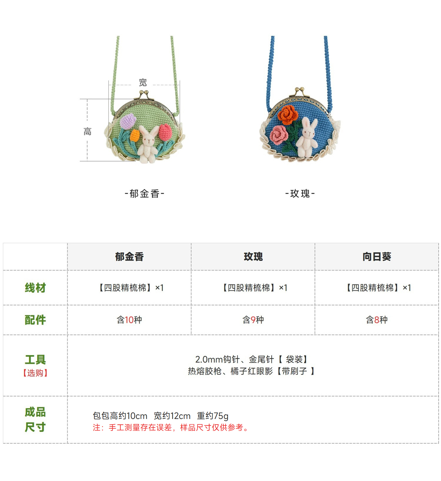 篱花兔子口金手工DIY编织棉线钩针包包毛线团自制材料包