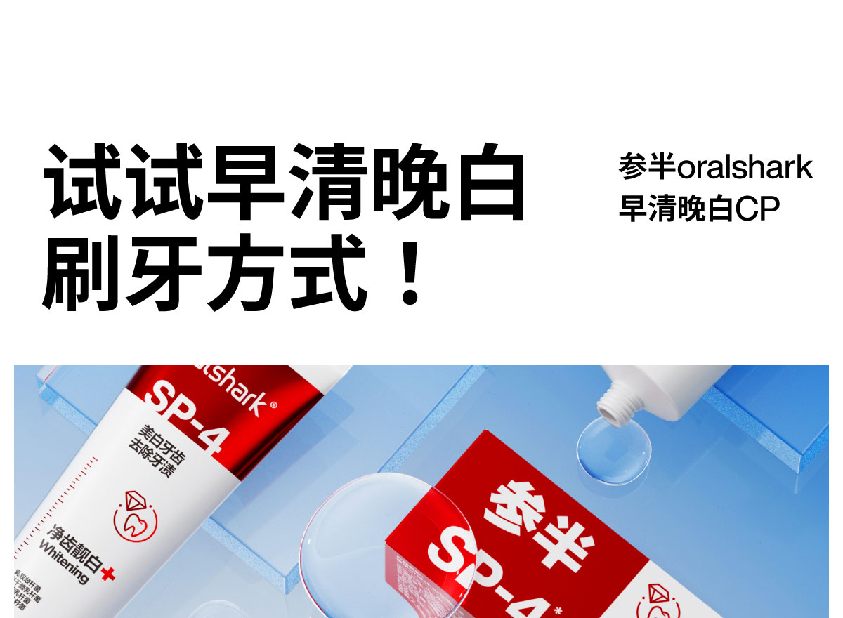 9楼母婴生活馆 参半口腔鲨鱼益生菌牙膏成人早晚搭配去黄口臭美白 吊牌价:59.9元1支 活动价:29.9元1支