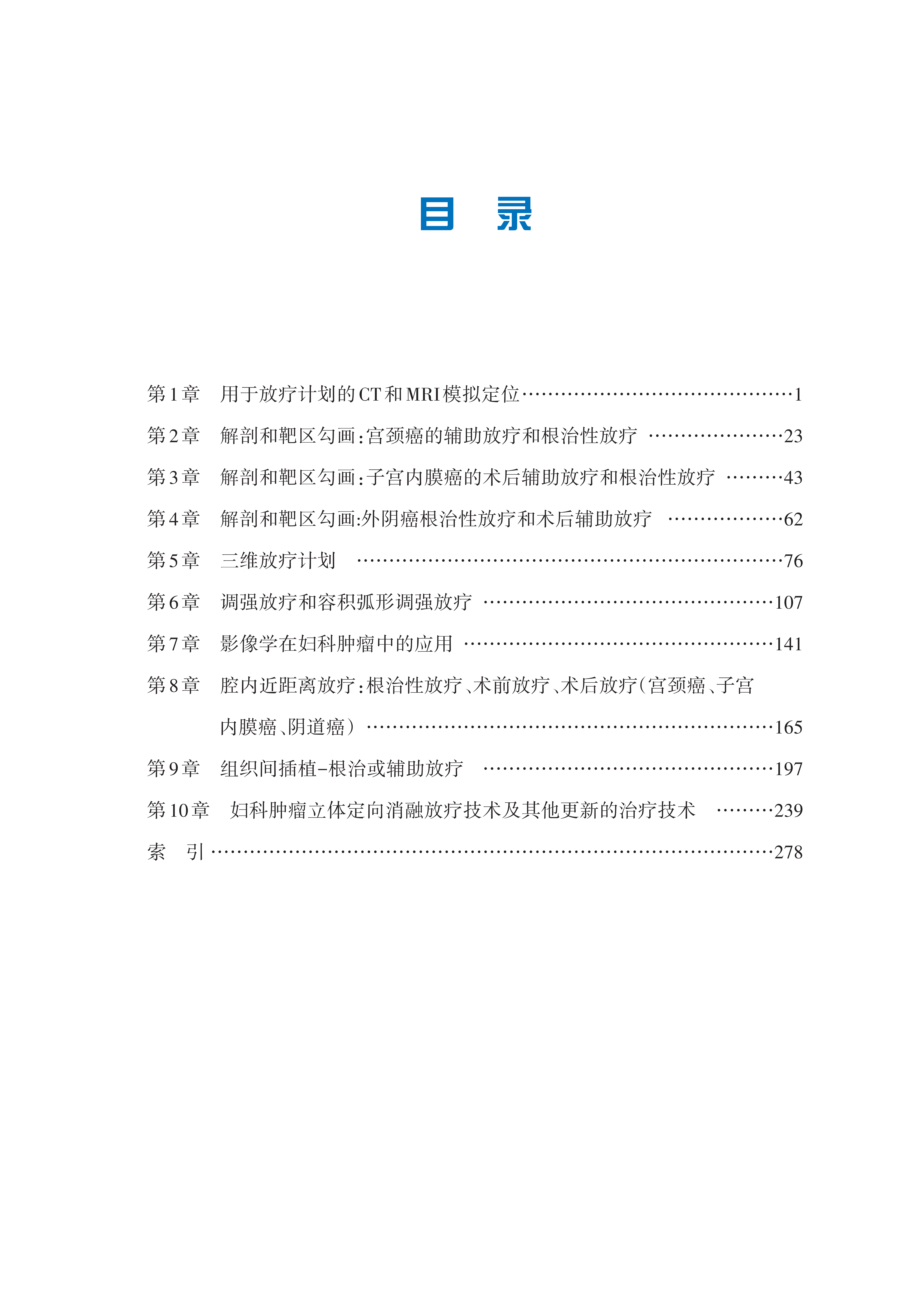 内容全面,体例清晰:全书共10章,对妇科肿瘤的类型进行具体划分,介绍了不同肿瘤的放射治疗计划。
