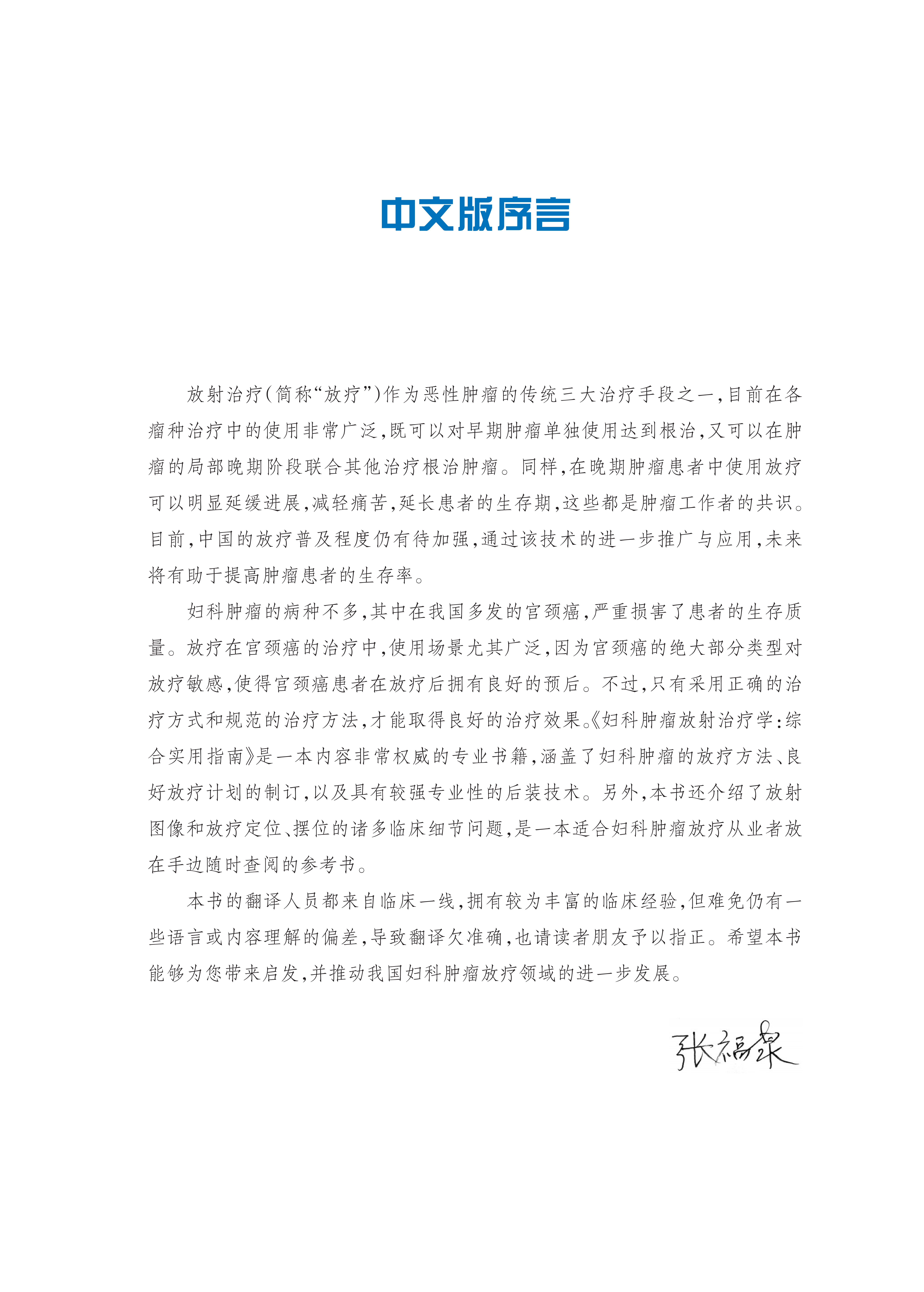 紧跟前沿,与时俱进:详细介绍了当前较为先进的妇科肿瘤放射治疗技术,助力读者将前沿知识应用于临床实践。