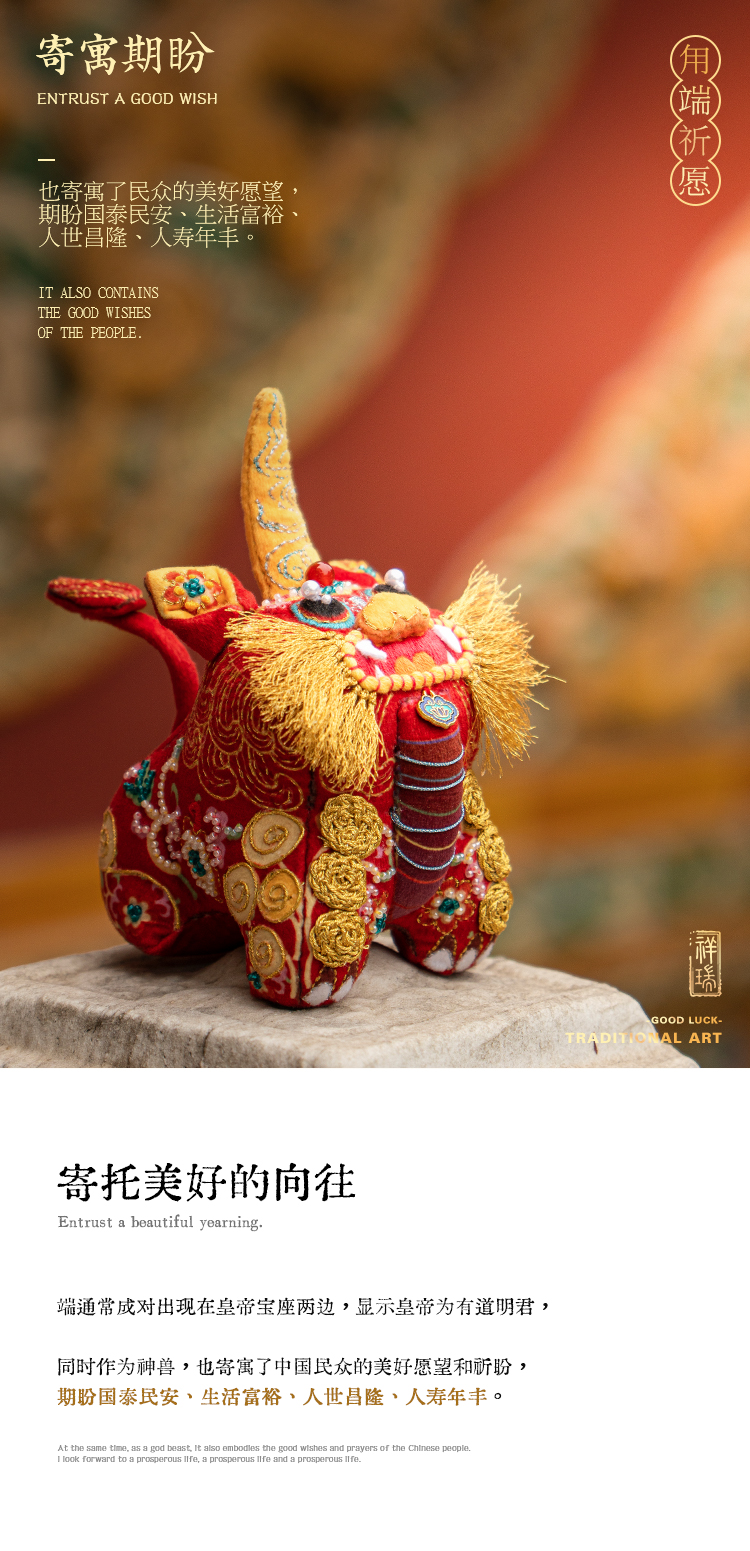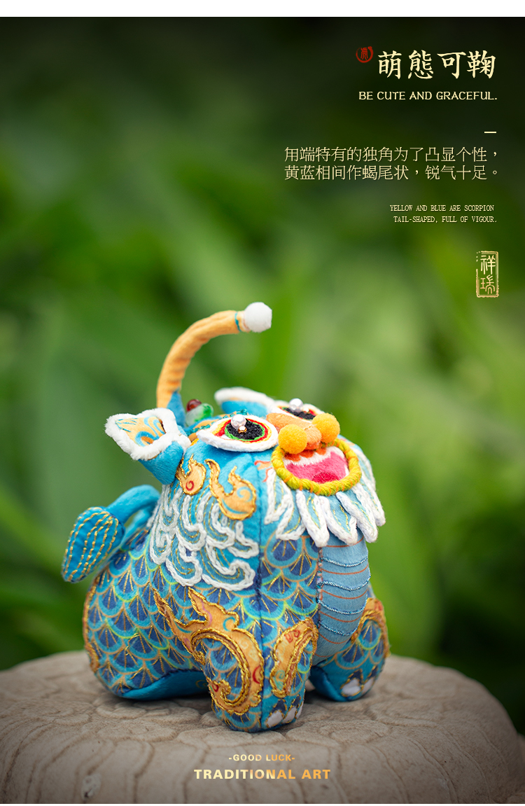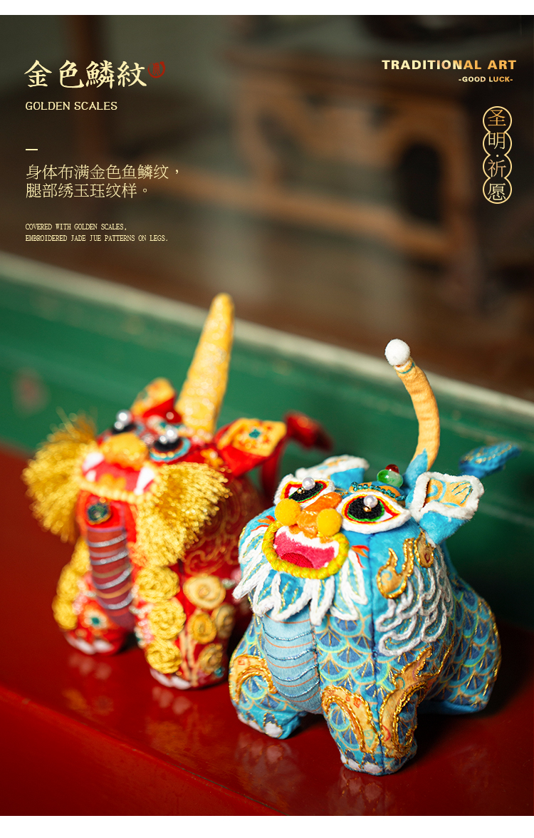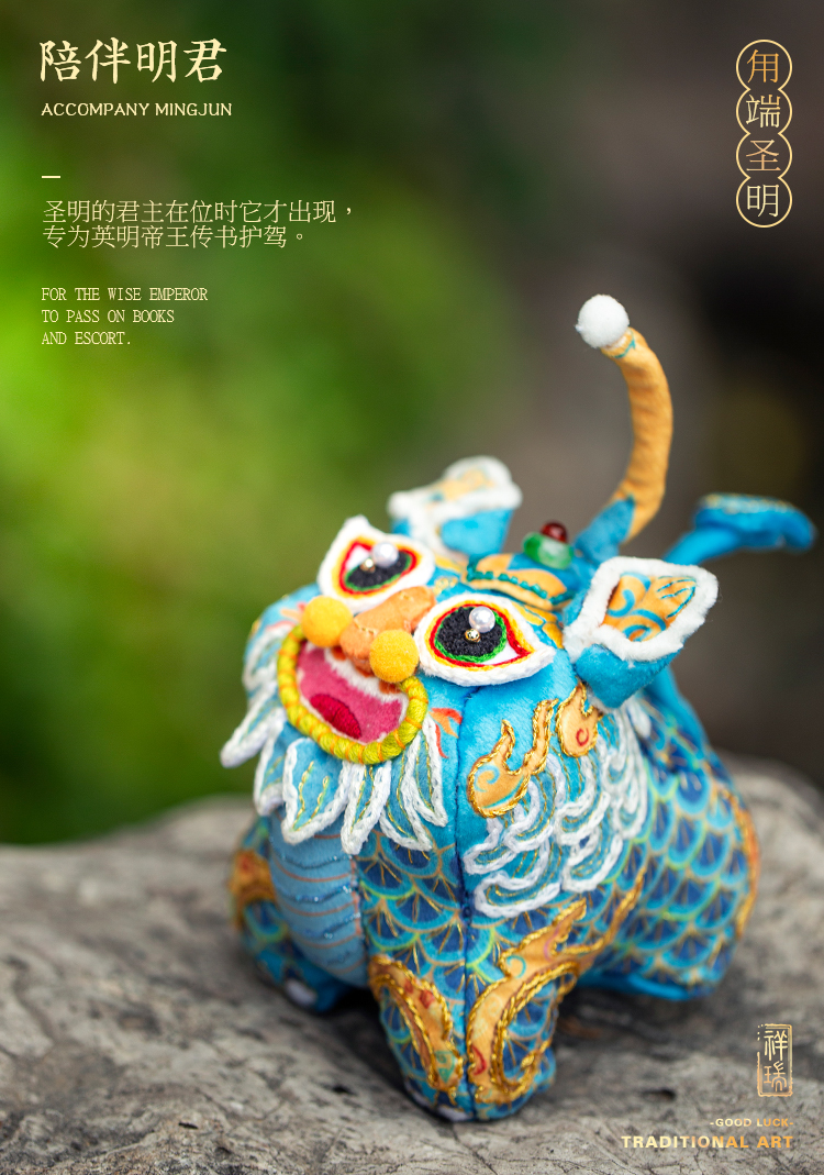【吉祥瑞兽系列】甪端刺绣玩偶摆件 diy材料包