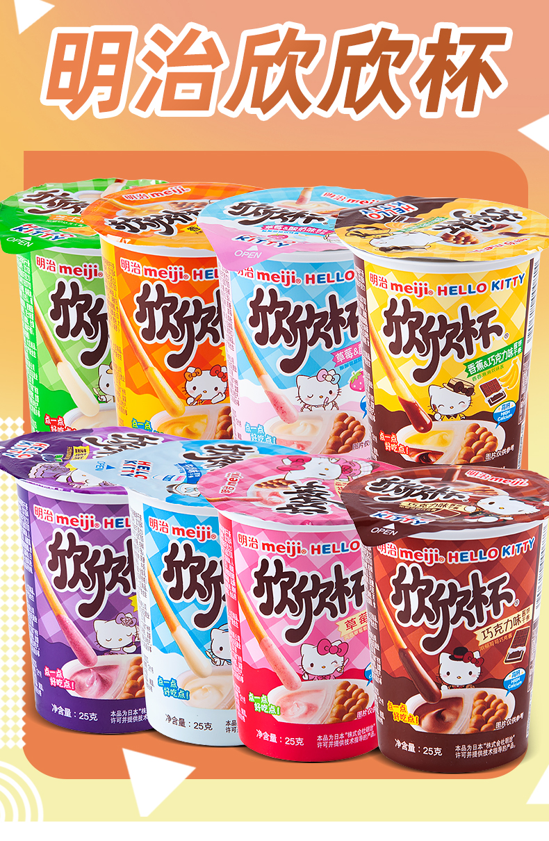 明治欣欣杯饼干条儿童节手指饼干 牛奶味酱饼干条 25g/杯