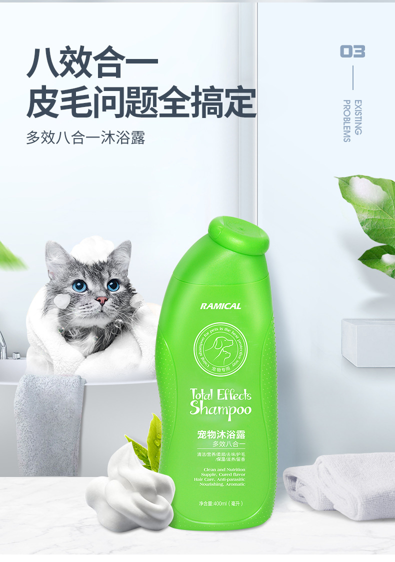 雷米高 宠物【全效八合一沐浴露】泰迪金毛幼犬防蚤抑螨猫犬通用香波洗液400ml