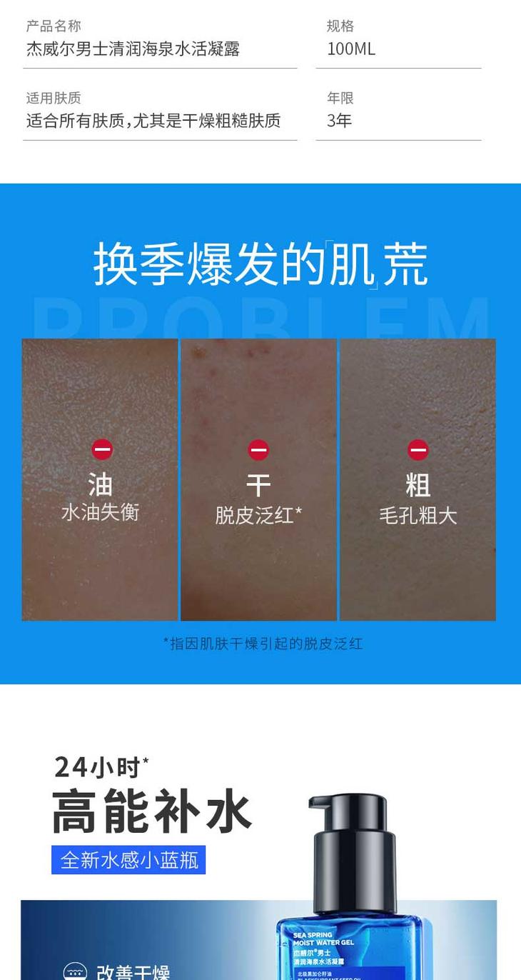 杰威尔男士保湿补水凝露爽肤水乳液二合一夏季面部滋润护肤品