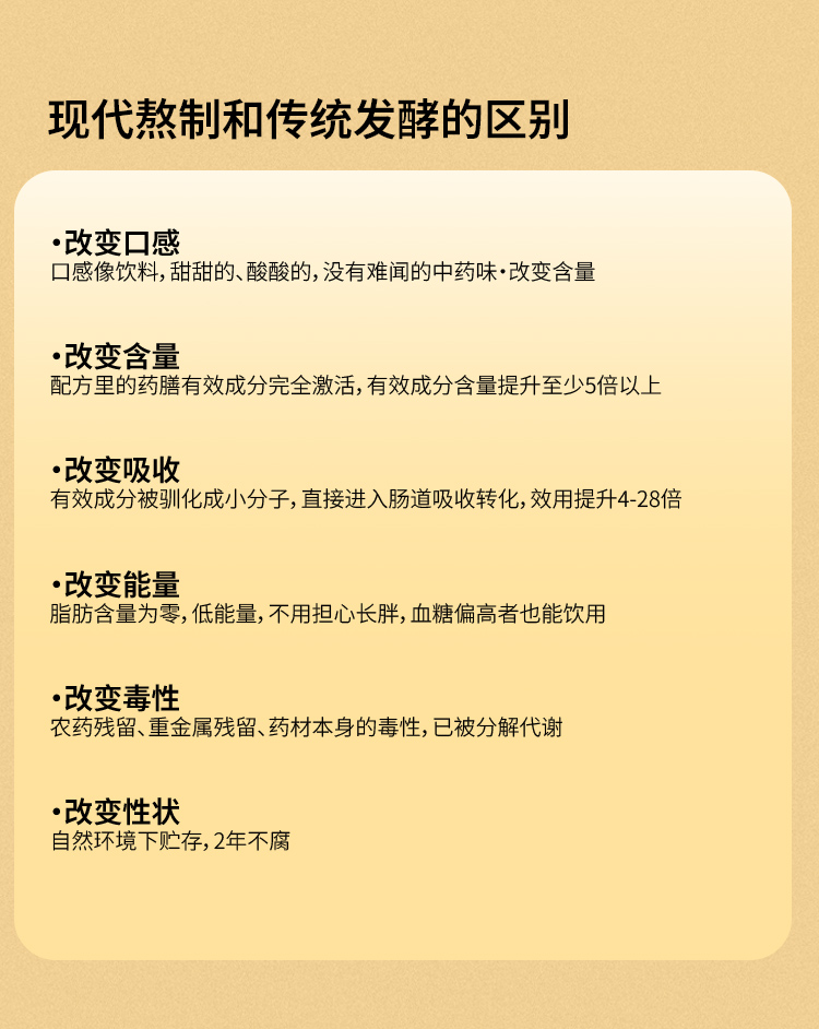 4、方中有方、药中有药,有效成分含量提升至少5倍以上,效用提升4-28倍。