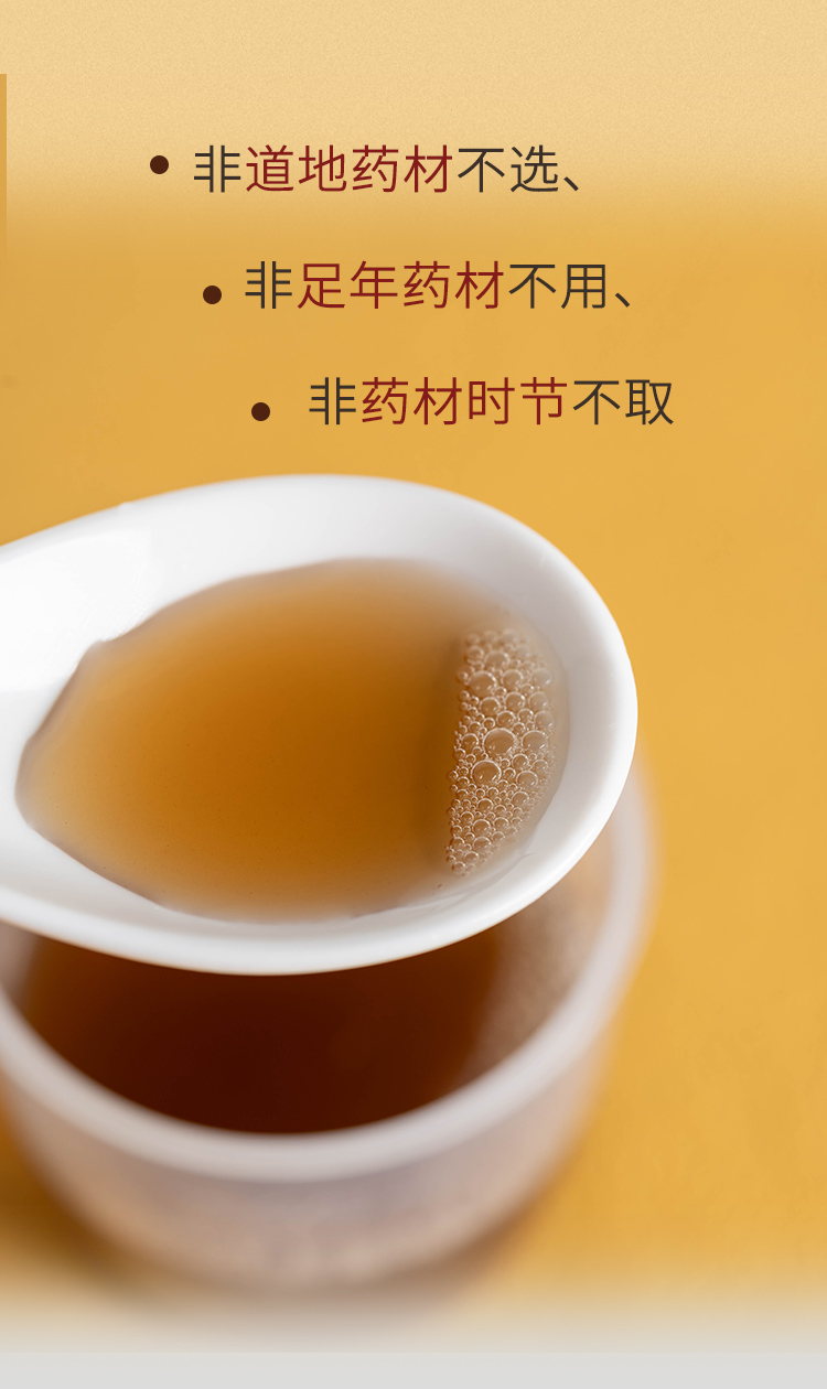 1、原材料非道地药材不选、非足年药材不用、非要药材时节不取。