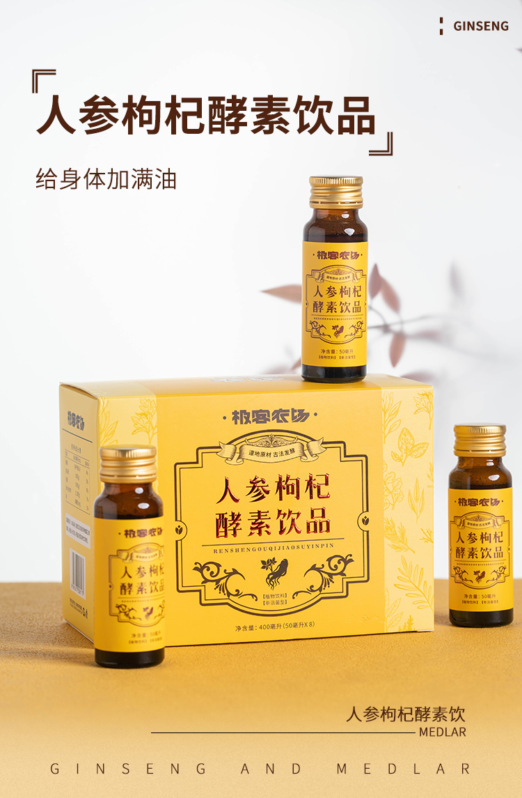 人参枸杞元气酵素饮| 饮用时间:上午,13种草本,180天发酵而成,有利于人体吸收,不上火50ML*8。⭐️顺丰快递
