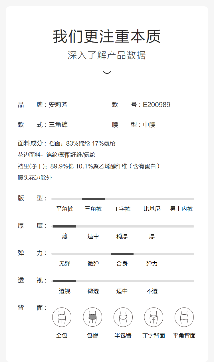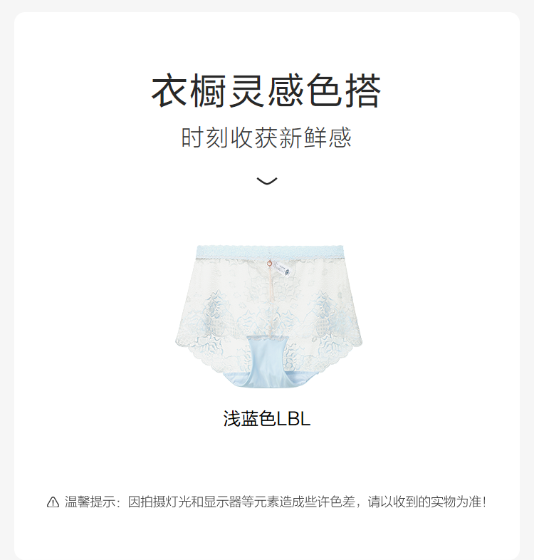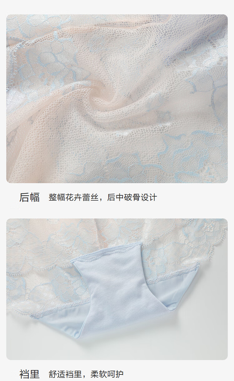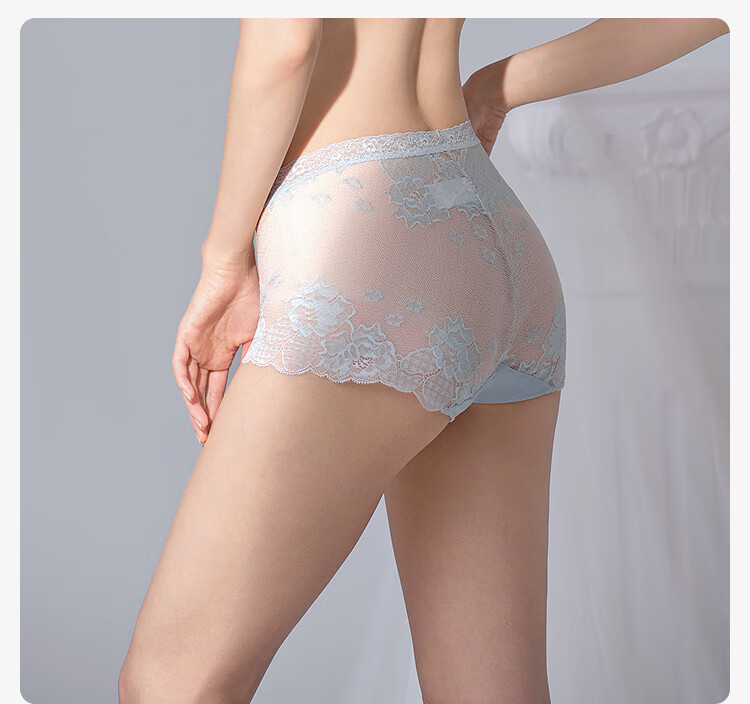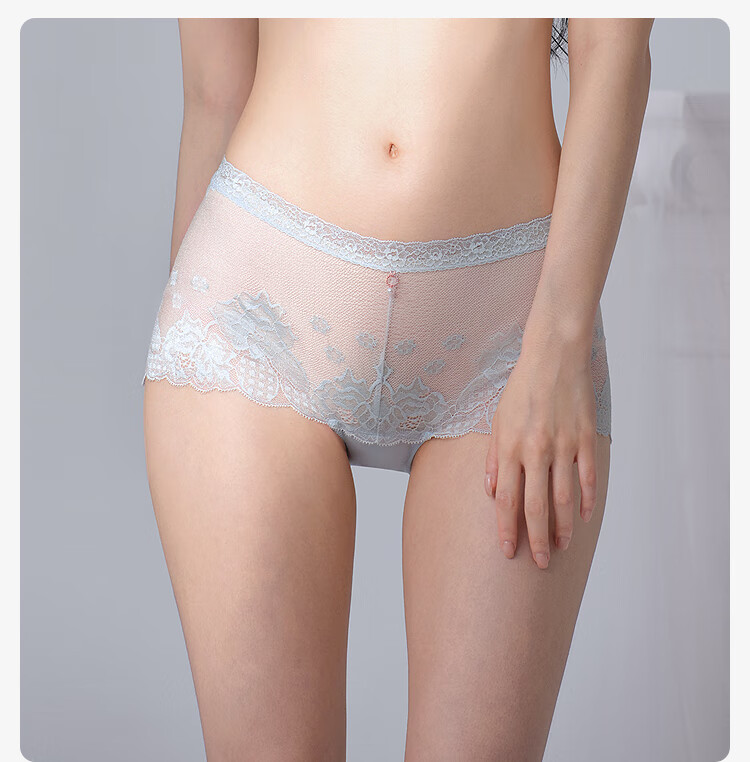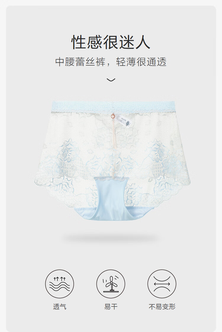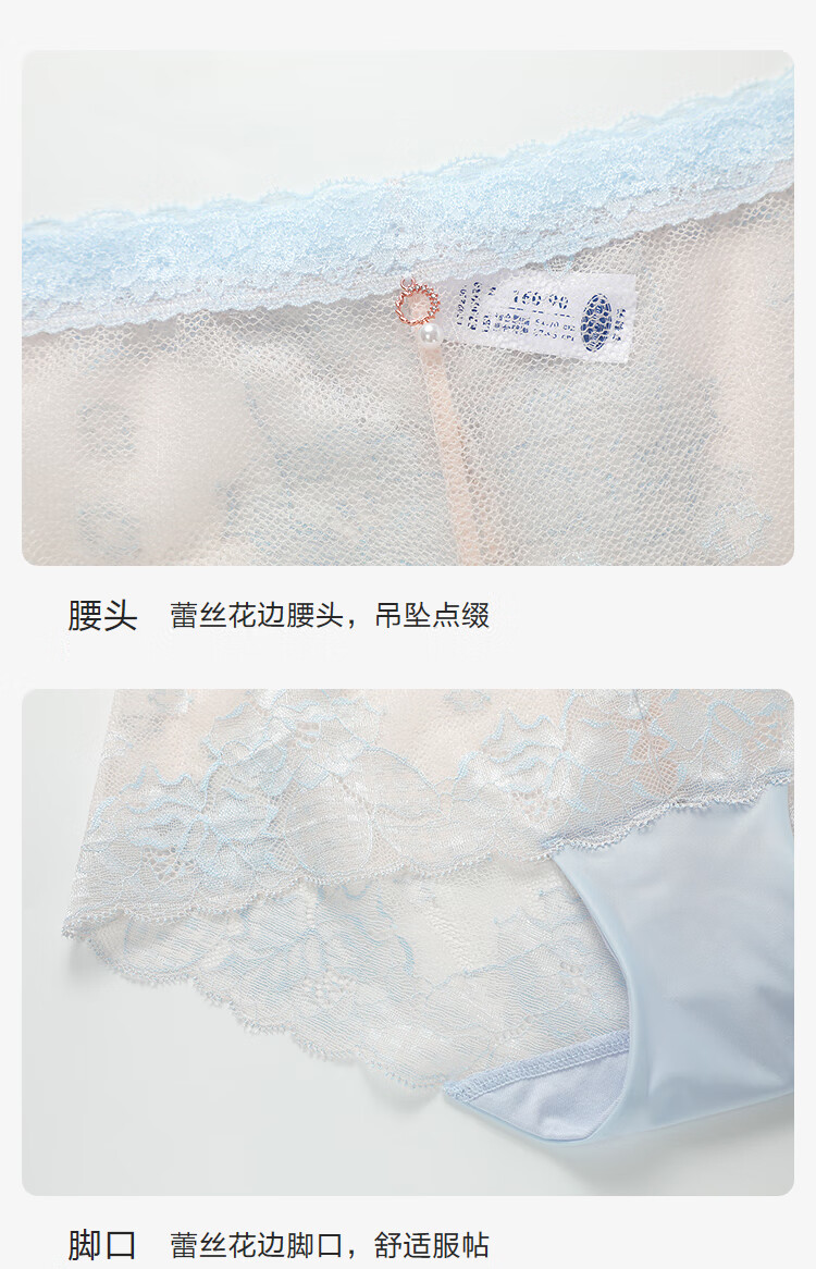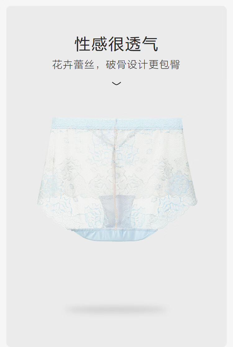 【3F】安莉芳花卉蕾丝性格中腰三角裤女士舒适包臀内裤E200989 浅蓝色LBL 1条 L