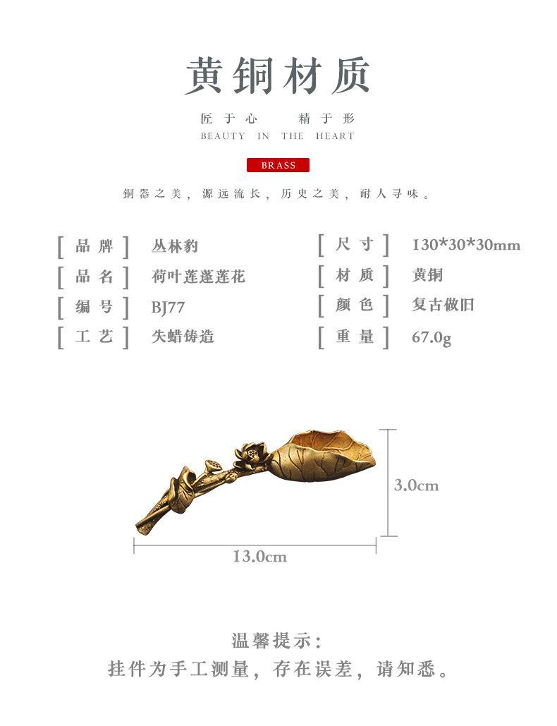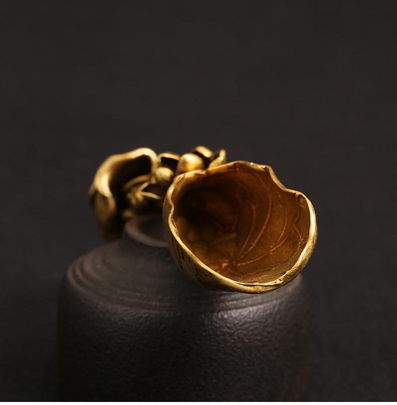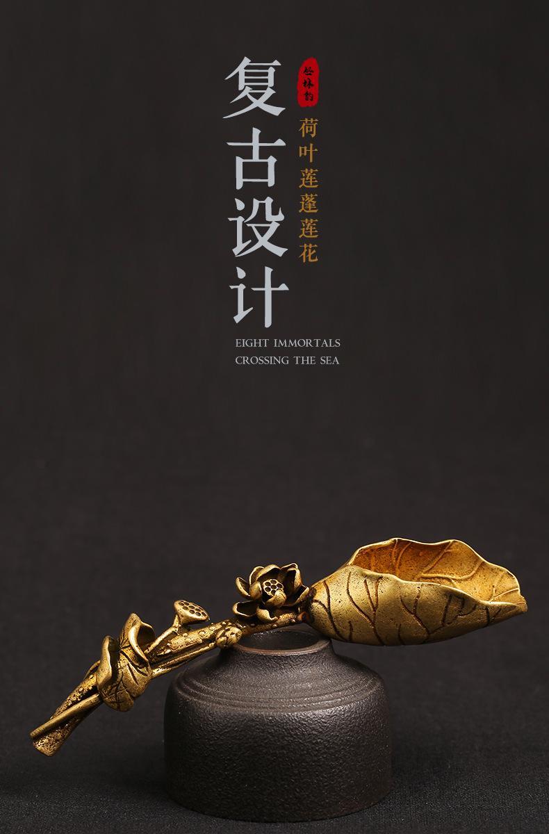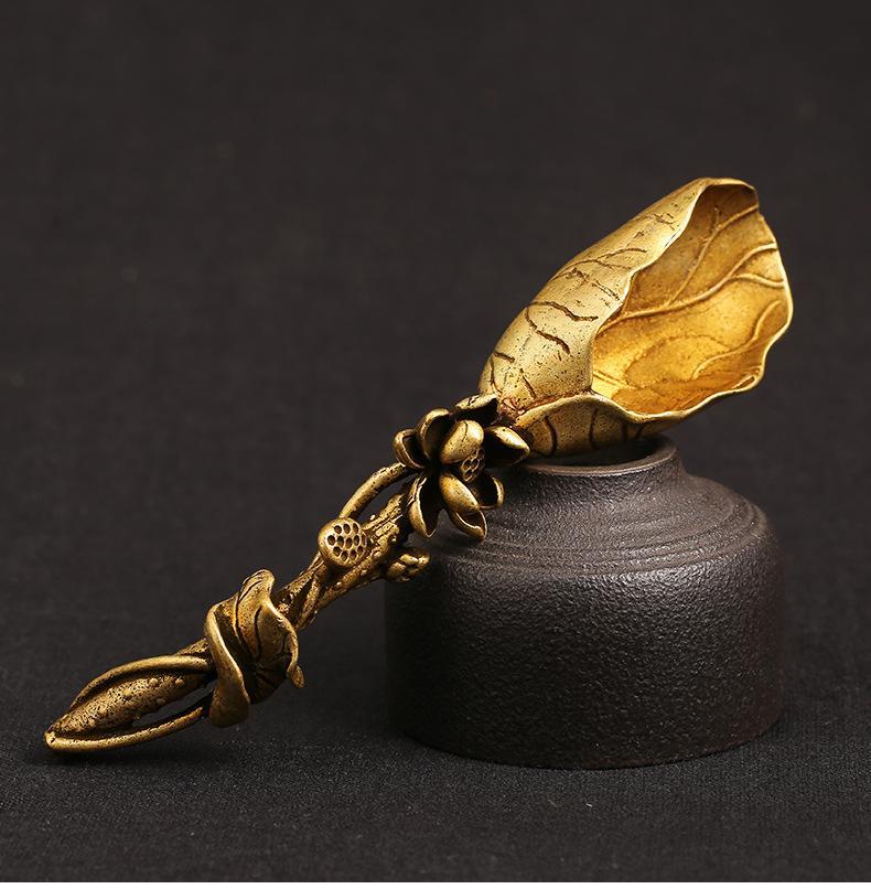 实心纯黄铜莲蓬荷叶茶铲创意个性莲花茶匙茶道茶艺摆件铜雕件装饰